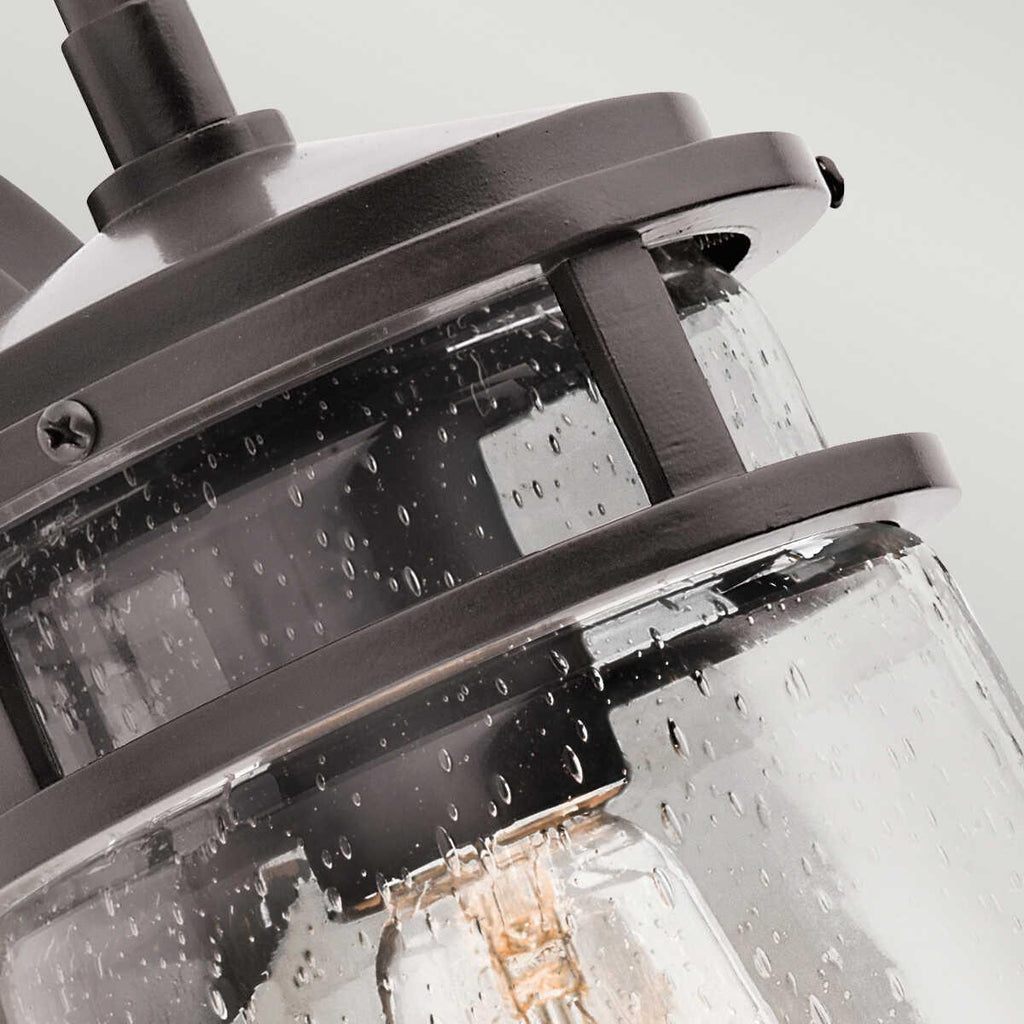 The��Lyndon Architectural Bronze Finish Medium Outdoor Wall Lantern from Elstead Lighting is a simple yet stunning art deco design, where the glass is the star of the show. Eye catching clear seeded glass is complemented by robust and classically designed metalwork in an Architectural Bronze finish. The Lyndon is available as a small or medium wall lantern, and as a small pendant lantern.