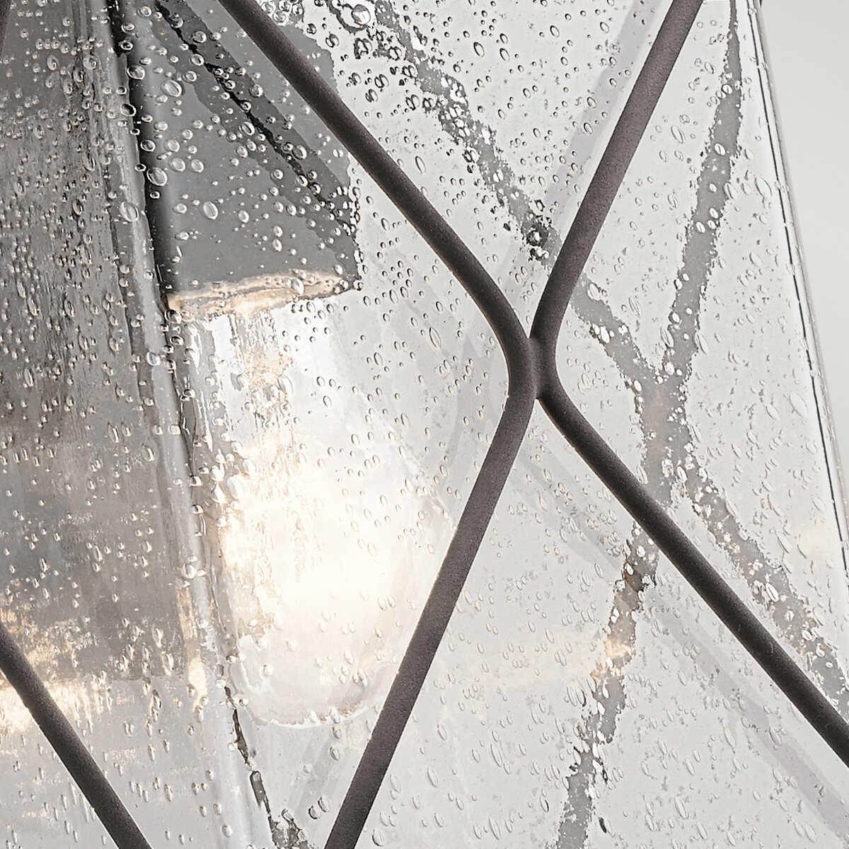 The Kichler Argyle Medium Zinc Outdoor Wall Light features a classic lantern design with a modern twist, making it an ideal choice for exterior lighting. Its robust metal frame is finished in a sophisticated dark hue, providing durability and a timeless aesthetic. The clear seeded glass panels add a touch of elegance while allowing the light to shine through beautifully, creating a warm and inviting ambiance. Perfect for illuminating entryways, patios, or garden areas, this wall light combines style and functionality, enhancing the exterior of any home with its charming presence.