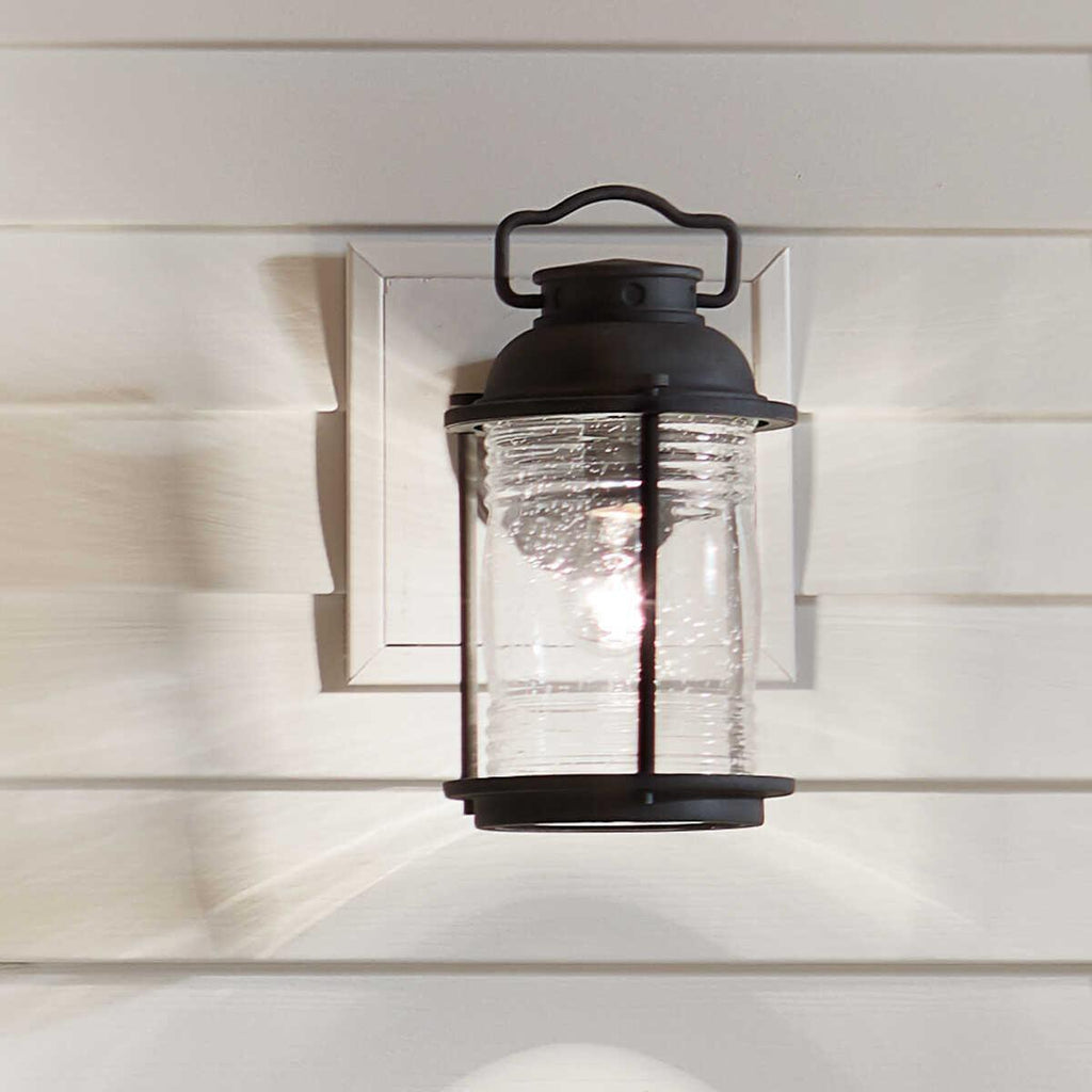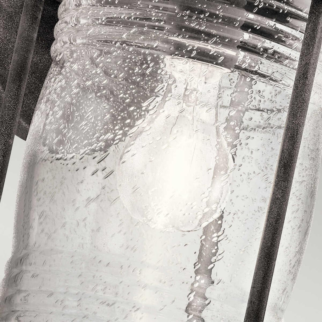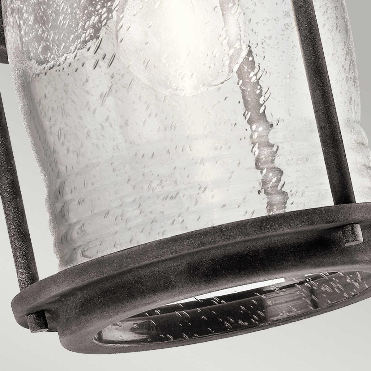 The Kichler Ashland Bay Zinc Medium Outdoor Wall Light features a classic lantern design with a robust metal frame in a weathered finish, exuding a timeless charm that complements any exterior decor. Its clear, textured glass encases the bulb, providing a warm and inviting glow that enhances the ambiance of outdoor spaces. Perfect for exterior lighting, this fixture is both stylish and functional, offering durability and resistance to the elements. Ideal for illuminating entryways, patios, or garden paths, it combines aesthetic appeal with practical lighting solutions, making it a versatile addition to any home’s outdoor lighting scheme.