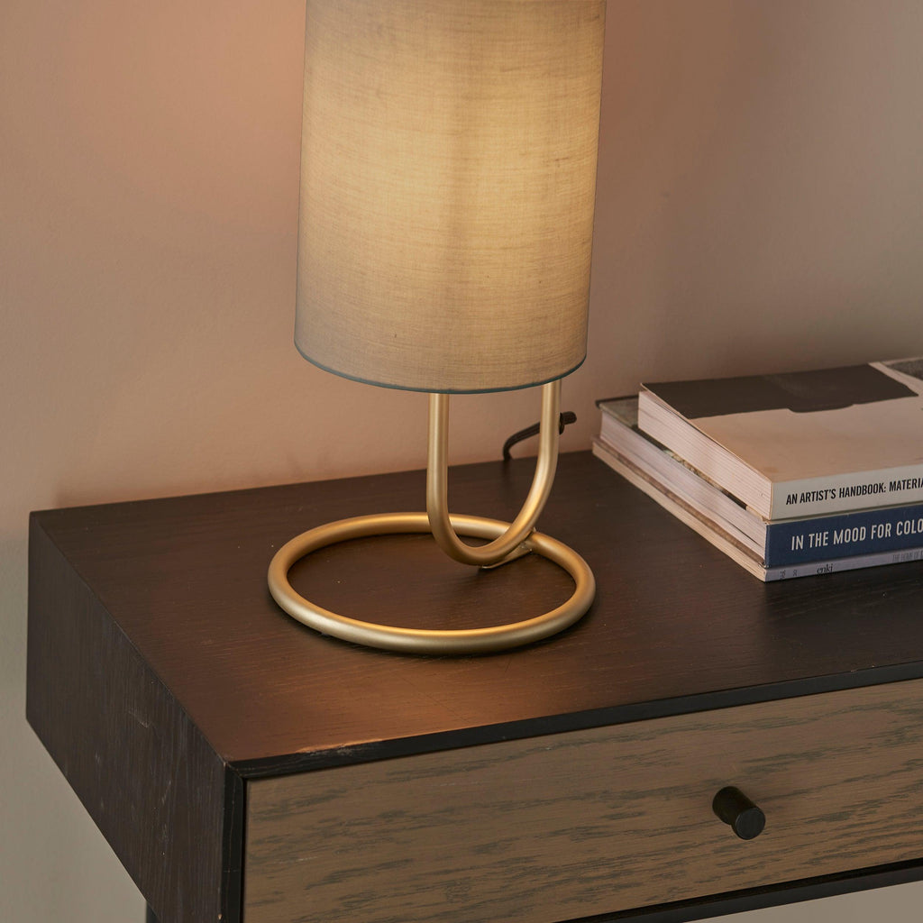 Klip Brass Modern Table Lamp Grey Shade