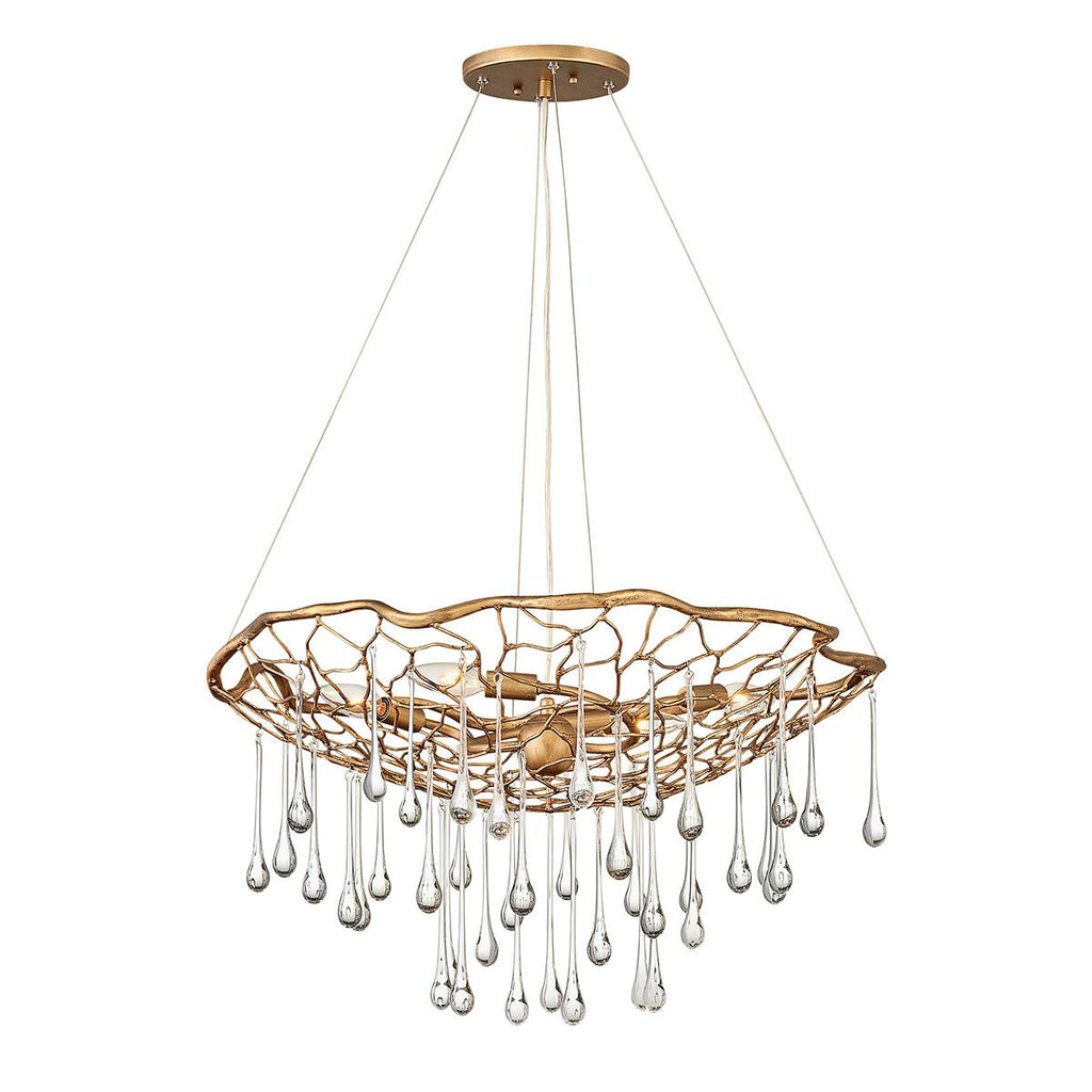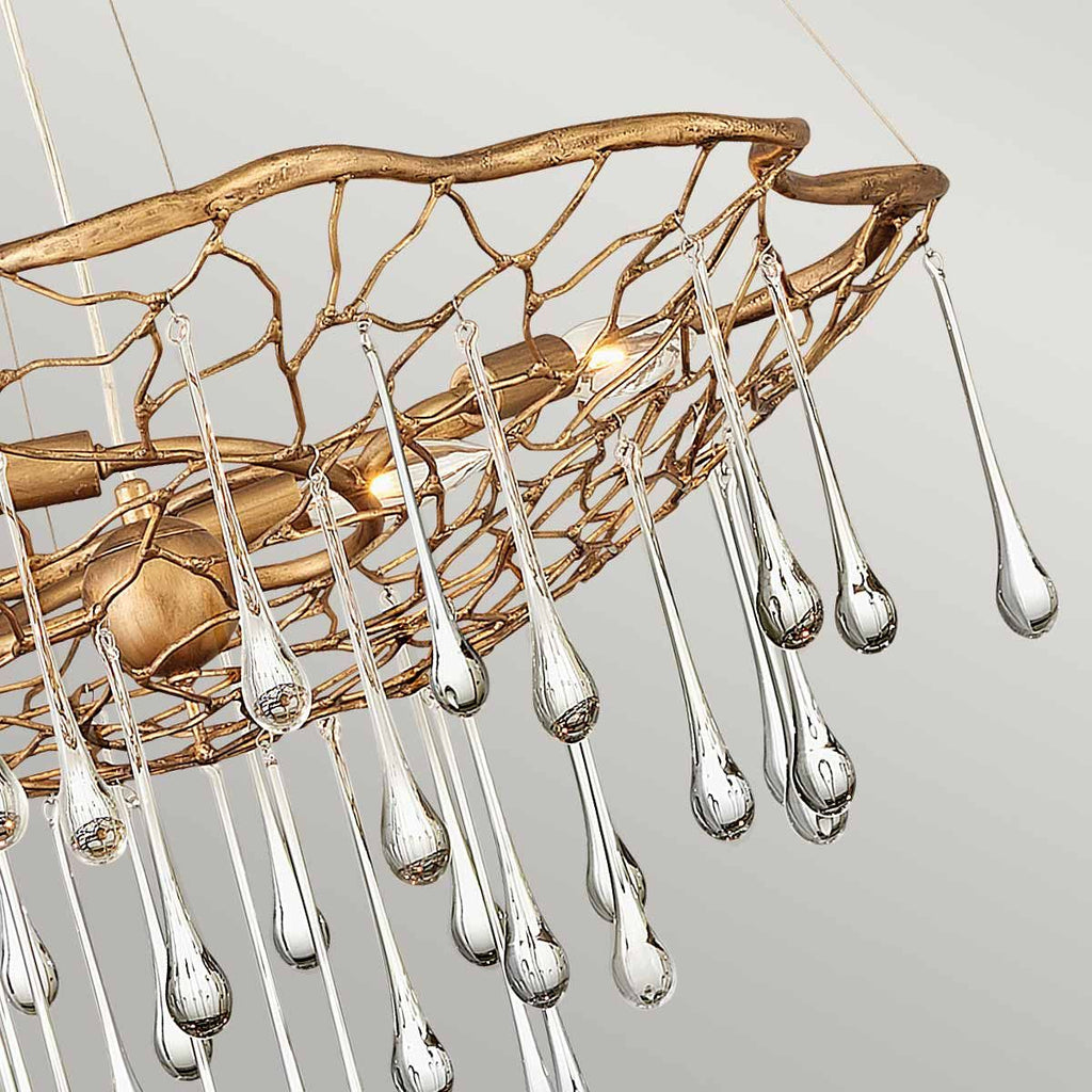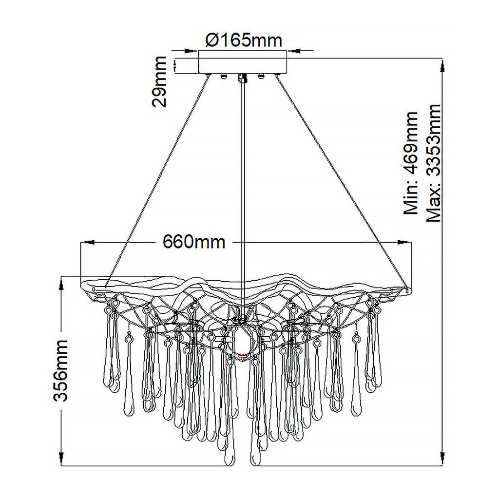 Enhance your living room or bedroom with the Laguna 4 Light Gold Ceiling Pendant Light—a striking blend of artistry and innovation. Designed by Lisa McDennon for Hinkley, this pendant features a hand-crafted open framework in elegant Brushed Gold, creating a sophisticated focal point for any room. Suspended clear glass droplets catch and reflect the light at varying lengths, producing a mesmerizing, shimmering effect. Minimalist hanging wires give the illusion of a floating net, while the central candle cluster bathes your space in a warm, inviting glow. Shop with confidence from the UK’s leading lighting specialists and enjoy free 90-day UK returns.| Adjustable Drop | 335.3cm/132" |