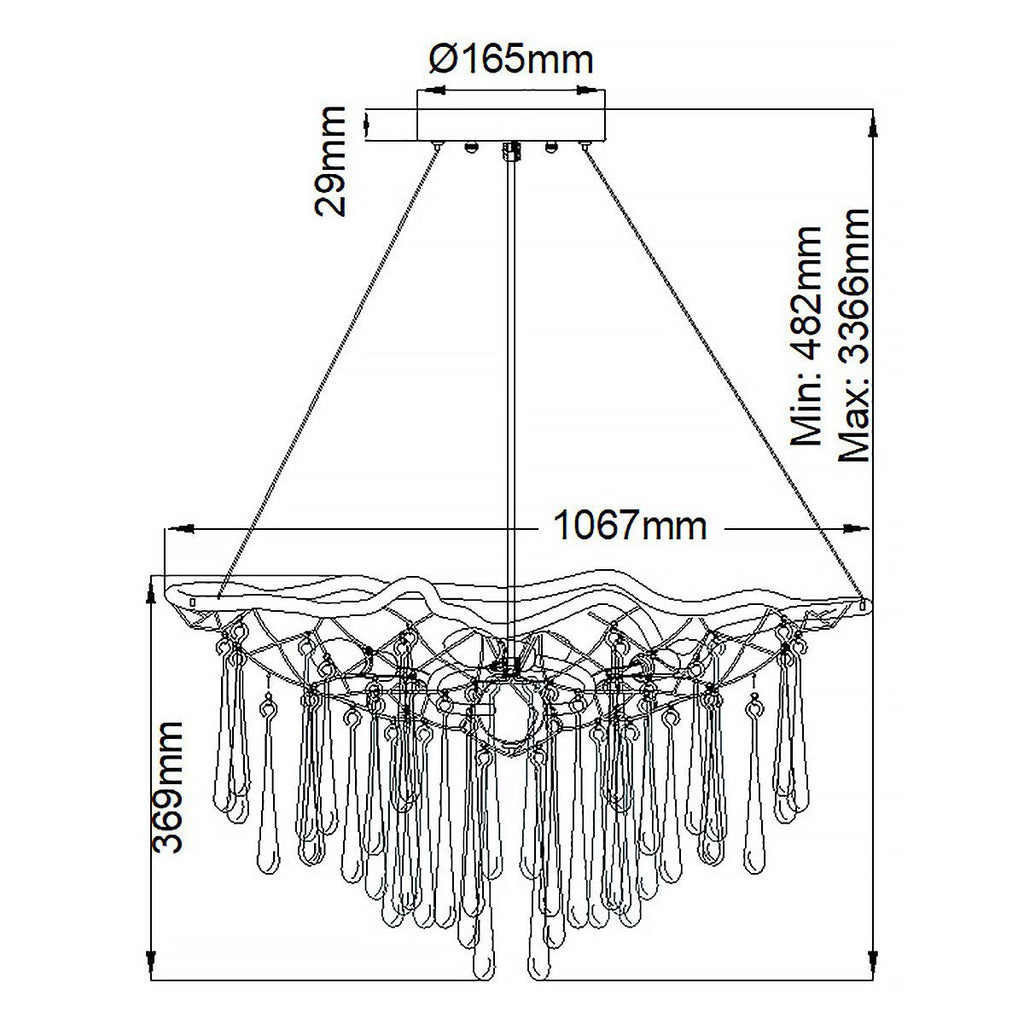 Enhance your living room or bedroom with the Laguna 8 Light Gold Ceiling Pendant—a striking blend of artistry and innovation. Designed by Lisa McDennon for Hinkley, this pendant features a hand-crafted open framework in luxurious Brushed Gold, evoking the elegance of a net glistening with water droplets. Suspended clear glass accents at varying lengths beautifully refract the light, creating a captivating interplay of illumination and shadow. Minimalist hanging wires give the illusion of the fixture floating effortlessly, while the central candle cluster bathes your room in a warm, inviting glow. Shop with confidence from the UK’s leading lighting specialists and enjoy free 90-day UK returns.| Projection | 40.6cm/16" |