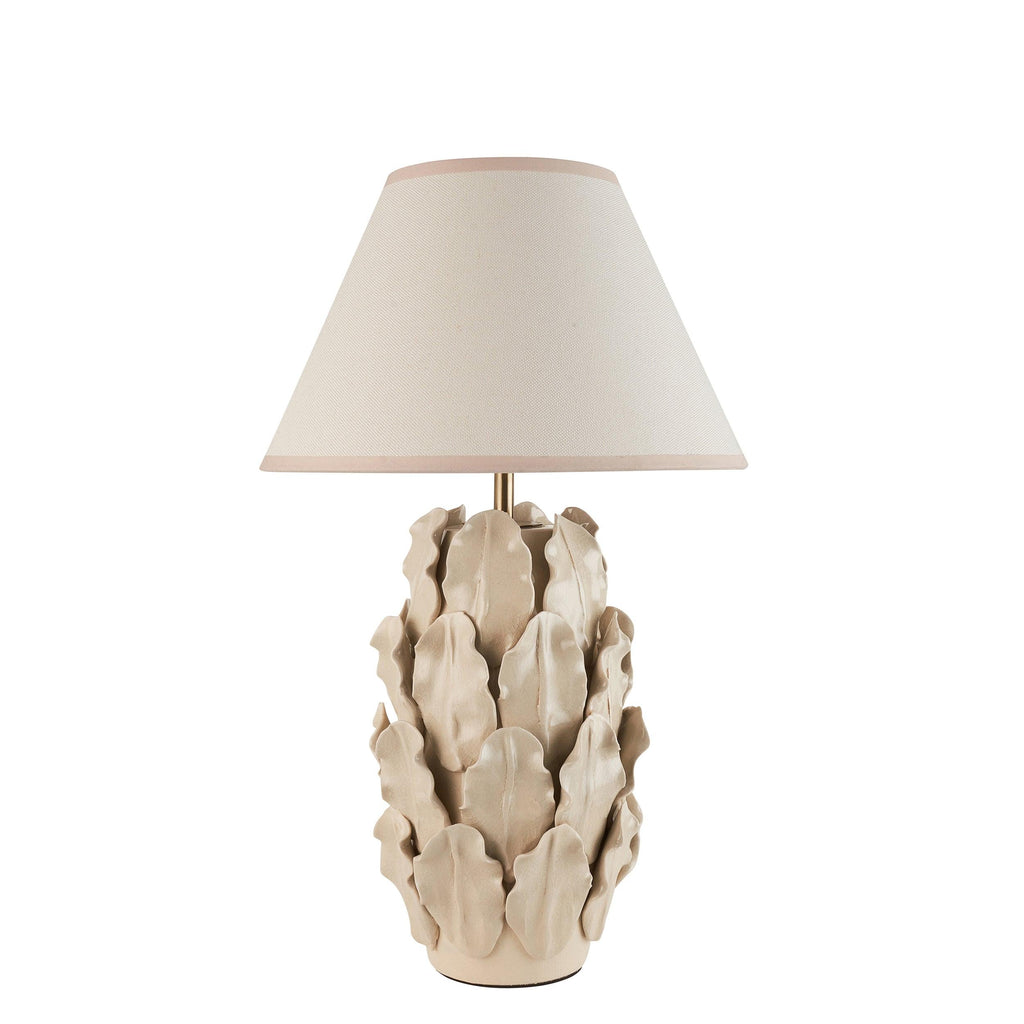 Layered Leaf Ivory Ceramic Table Lamp & Ivy 30cm Vintage White Shade