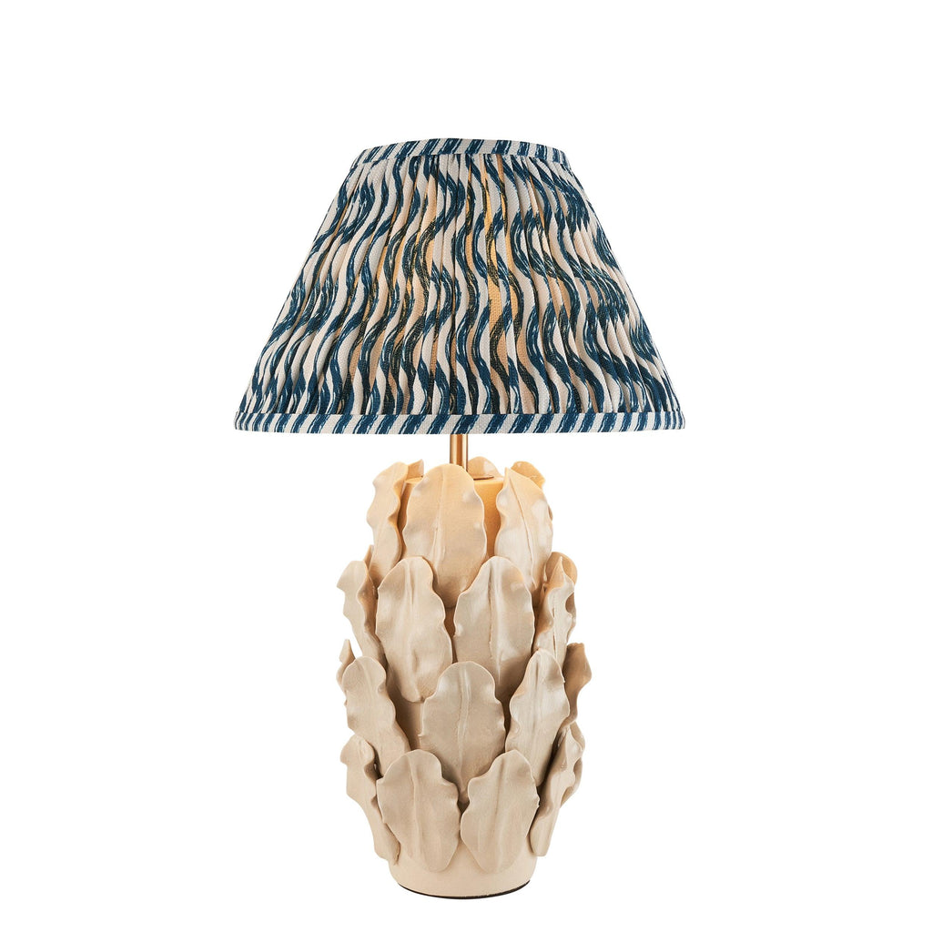 Layered Leaf Ivory Ceramic Table Lamp & Ripple 30cm Marlin Blue Shade