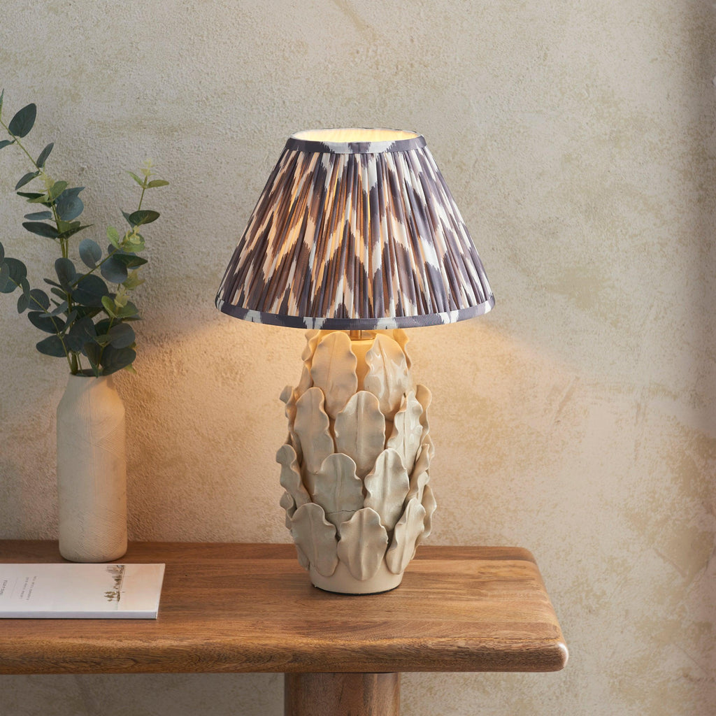 Layered Leaf Ivory Ceramic Table Lamp & Zigzag 30cm Pearl Grey Shade