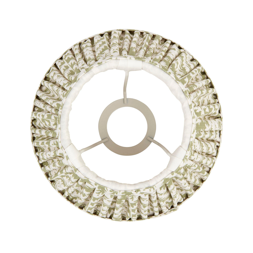 Introducing our stunning 20cm tapered shade featuring a white gimbal, adorned with a unique leaf pattern in a soft herb garden green hue. The exquisite taped edge detailing and plain inner lining add a touch of elegance, making it a perfect addition to your living room decor. This shade beautifully complements our range of decorative table lamps, wall lights, and chandeliers, enhancing the ambiance of any space. Enjoy a fast and secure delivery service, along with easy returns, ensuring a hassle-free shopping experience. Shop with confidence and transform your living room with our exquisite lighting solutions today!| Shade Height | 14.5cm/5.7" |