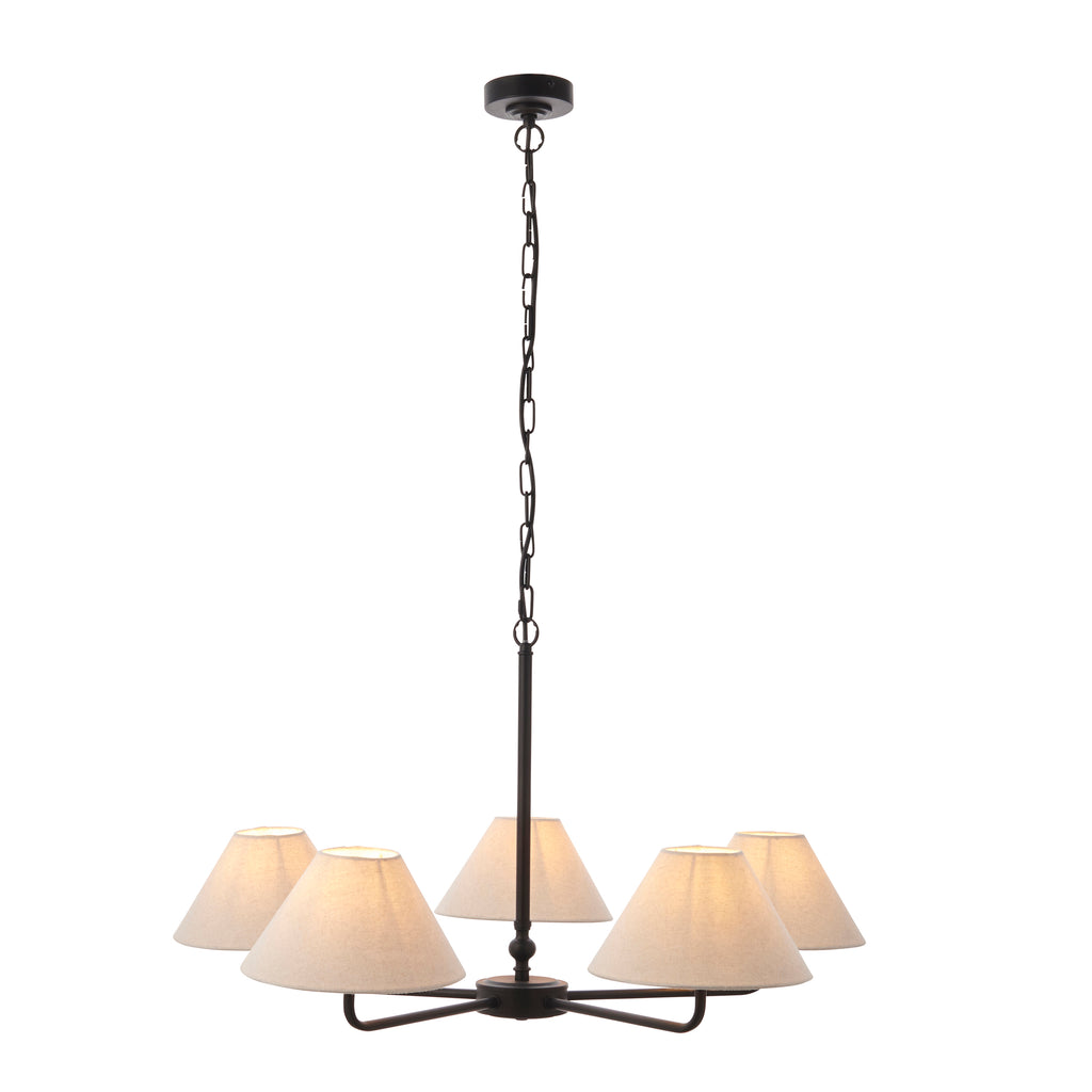 Lille Black 5 Light Pendant - Linen Shade