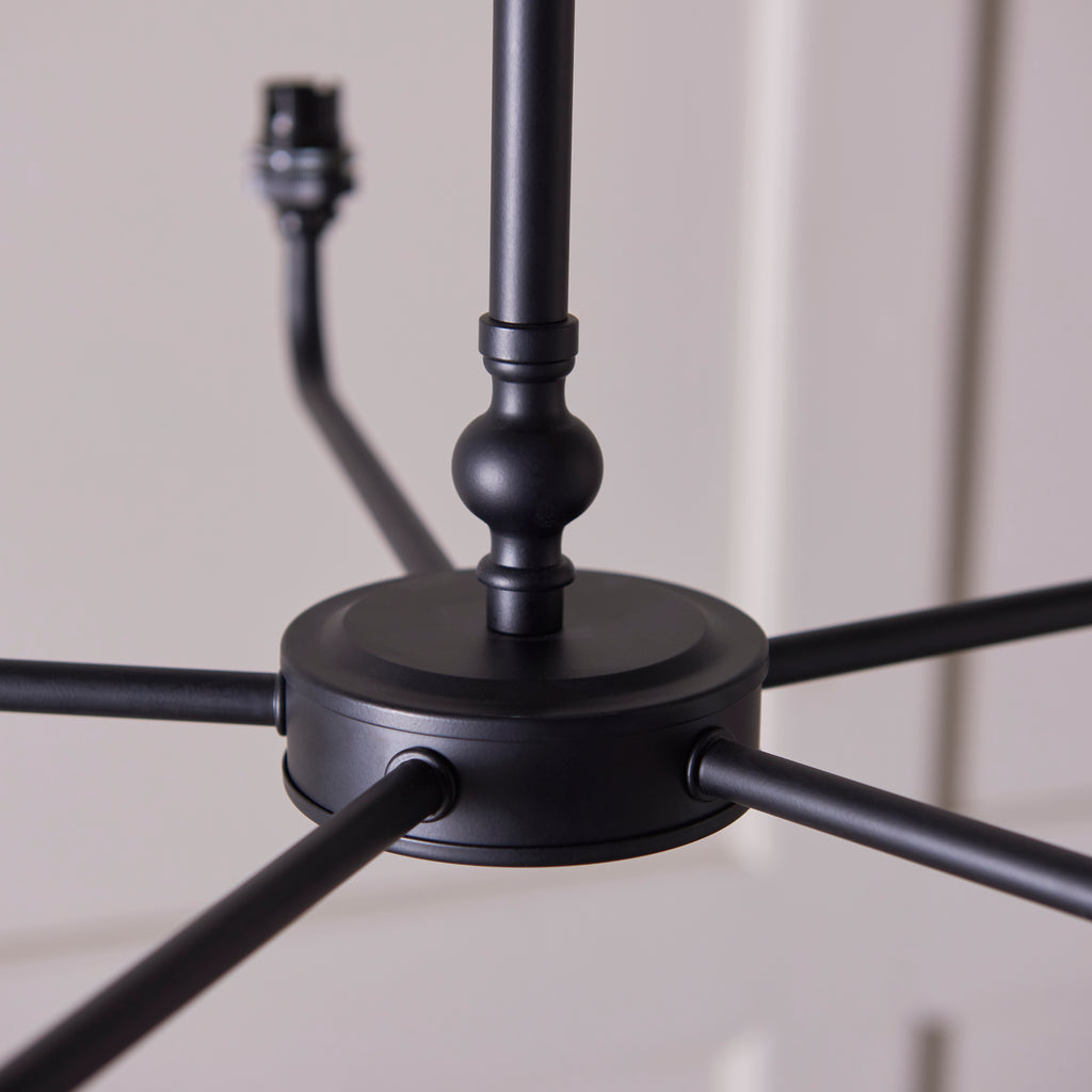 The Lille Black 5 Light Pendant combines sophisticated design with practical versatility, featuring a matt black finish on its metal framework that lends a contemporary yet timeless appeal. Each of the five lights is adorned with our natural 16cm Ikat shades, crafted from a luxurious polyester-cotton blend fabric with a digitally printed silk-like texture that elevates any interior. The handcrafted gathered pleated tapered shades include fine taped edge detailing and a plain inner lining for refined durability. This pendant is equipped with B22 lamp holders, compatible with dimmable B22 LED lamps to allow adjustable ambience. Its height-adjustable chain and 1.5-metre black fabric cable provide flexible installation options. Ideal for creating a classic yet modern atmosphere, this pendant also pairs seamlessly with matching items for a cohesive lighting scheme.