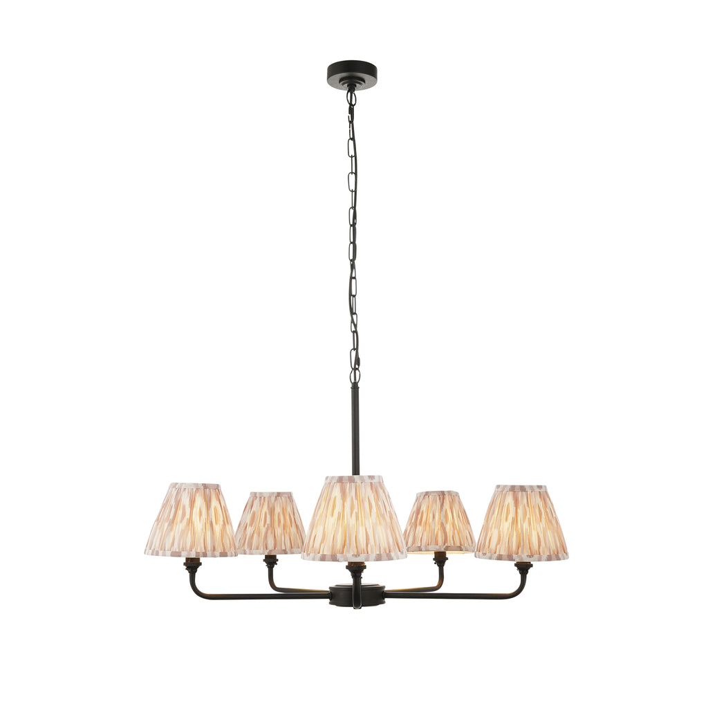 Lille Black 5 Light Pendant & Neutral Ikat 16cm Shades
