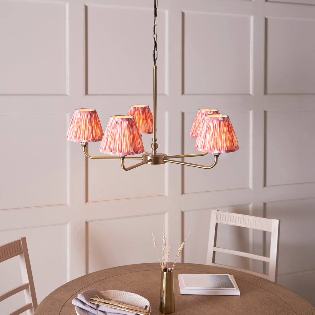 Lille Brass 5 Light Pendant & Coral Pink Ikat 16cm Shades