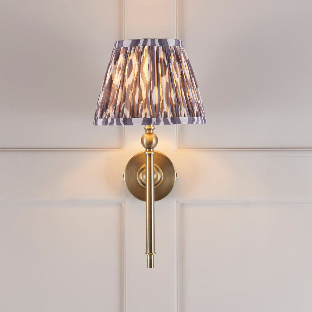 Lille Brass Wall Light & Grey Ikat 20cm Shade