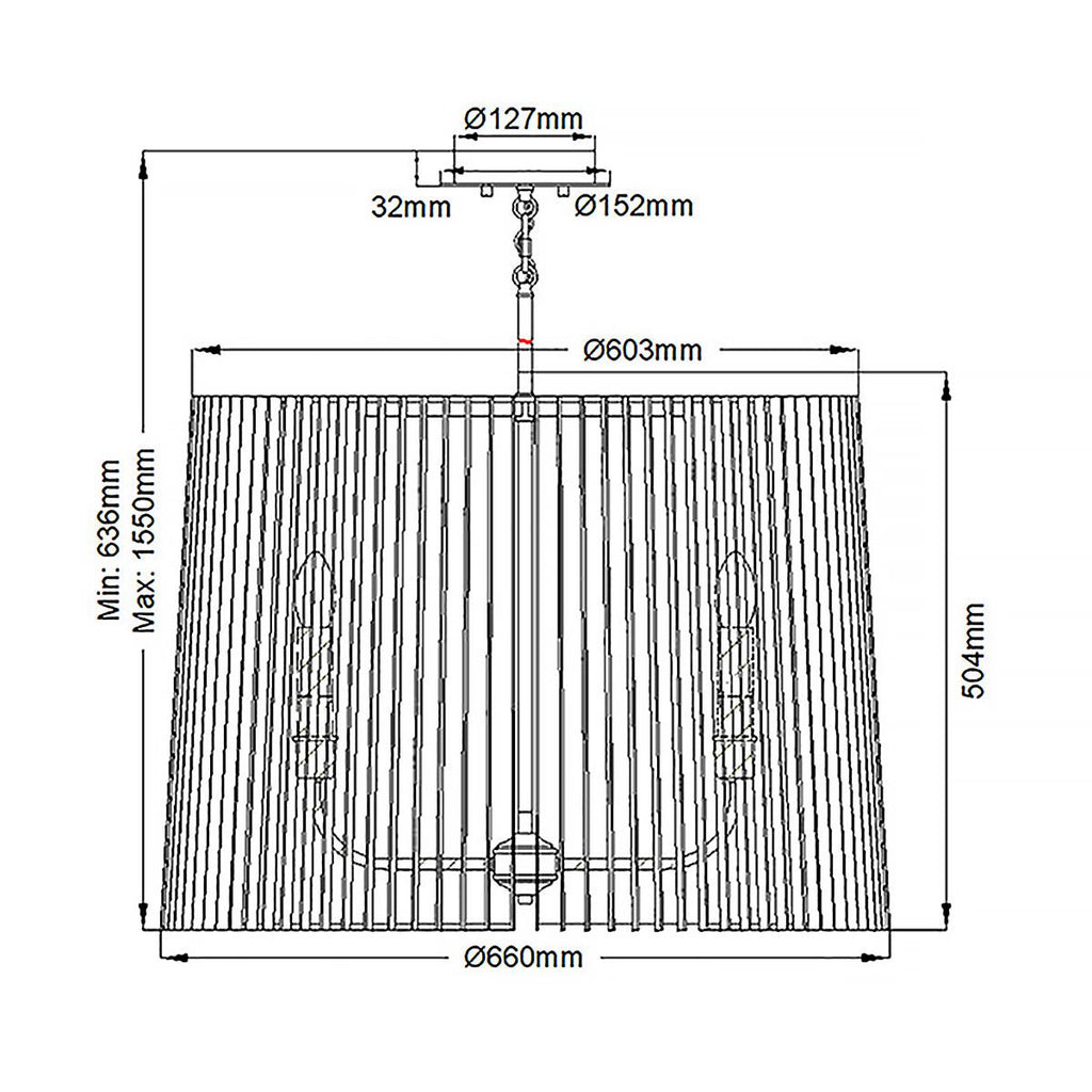 Experience the Linara 6 Light Modern Chandelier/Pendant—a striking fusion of natural brass and matte black metal that elevates any space. The elegant brass accents shine like fine jewelry against the bold, slatted shade, creating a captivating interplay of light and shadow when illuminated. Perfect for those seeking a sophisticated update to contemporary or mid-century modern interiors, the Linara adds depth and visual interest to your décor. Shop with confidence from the UK’s leading lighting specialists and enjoy free 90-day UK returns on your purchase.| Adjustable Drop | 155cm/61" |