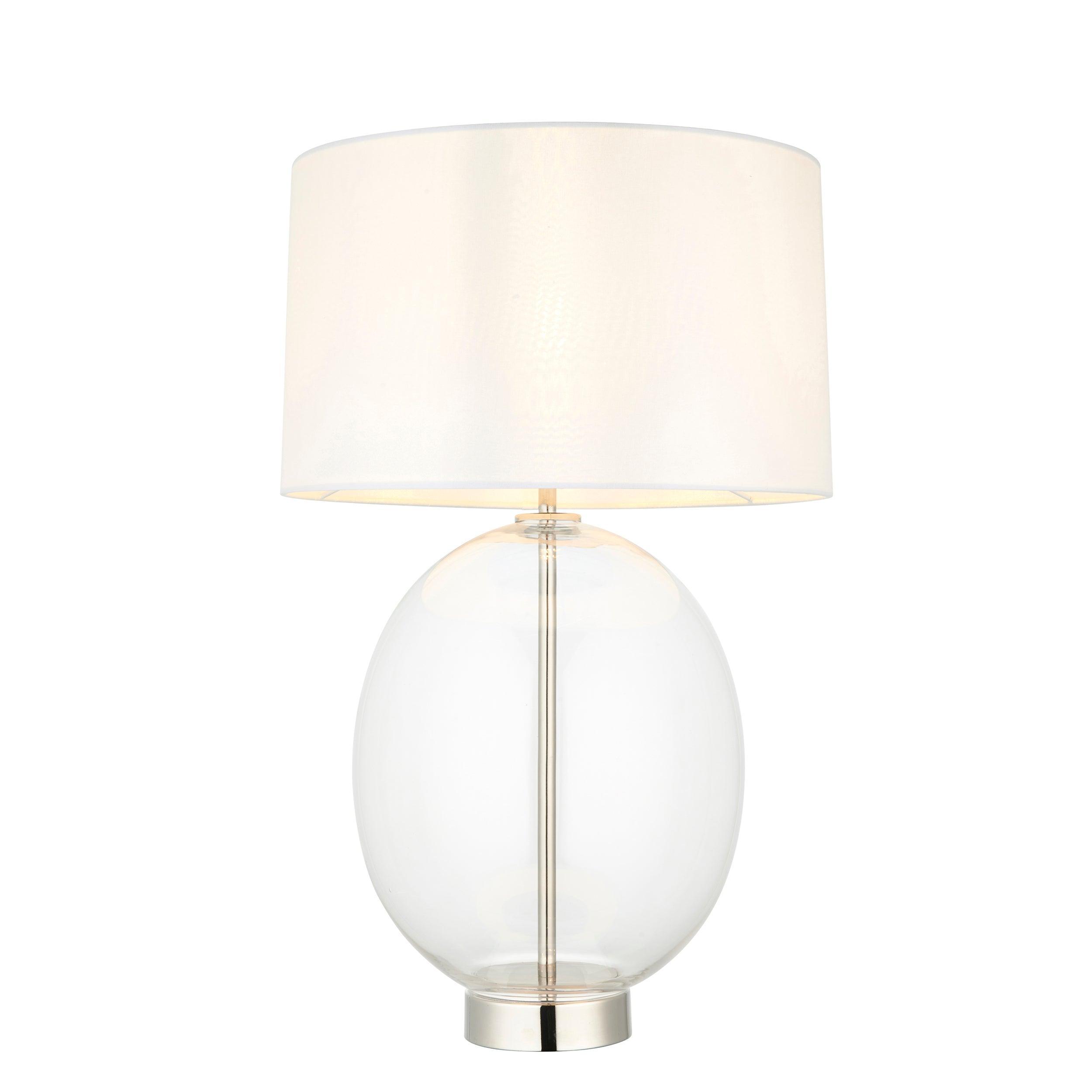 Linear Nickel & Oval Glass Touch Table Lamp - White Shade