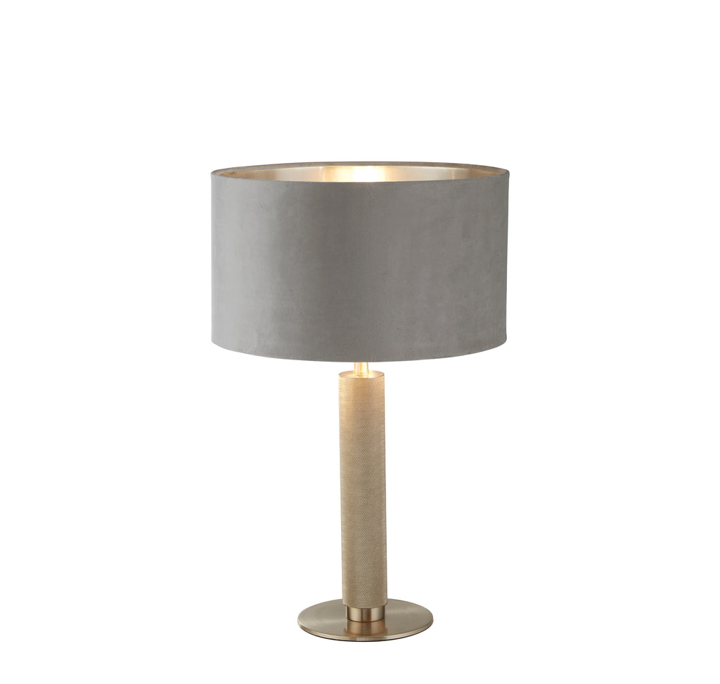 London Table Lamp- Knurled Satin Silver & Grey Velvet Shade