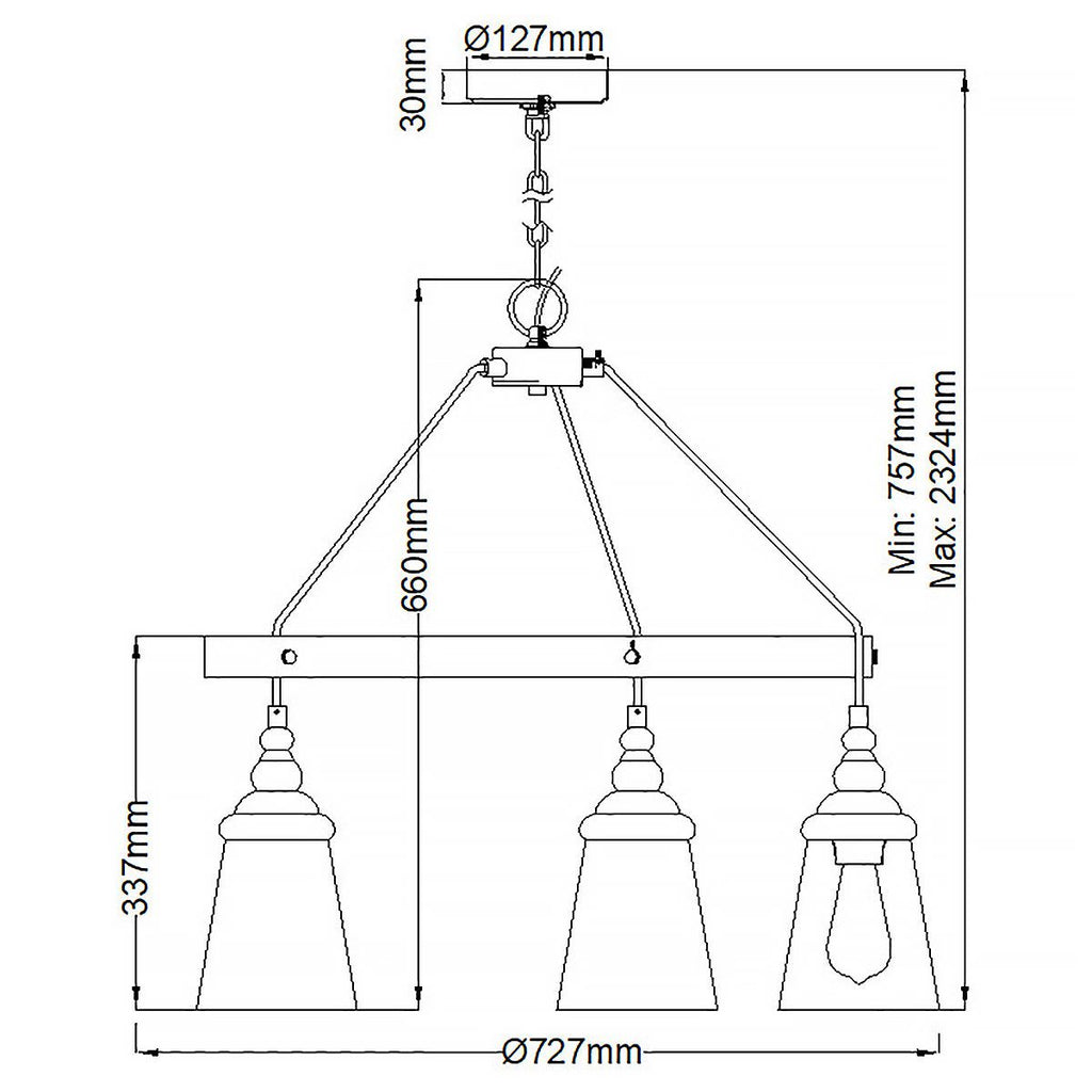 Enhance your living room or bedroom with the Loras 5 Light Chrome Chandelier—a modern interpretation of classic industrial style. This striking fixture features clear seeded glass shades suspended from elegant black fabric cords, complemented by polished chrome metalwork for a sophisticated finish. Shop with confidence from the UK’s leading lighting specialists and enjoy free 90-day returns on your purchase.| Adjustable Drop | 232.4cm/91.5" |