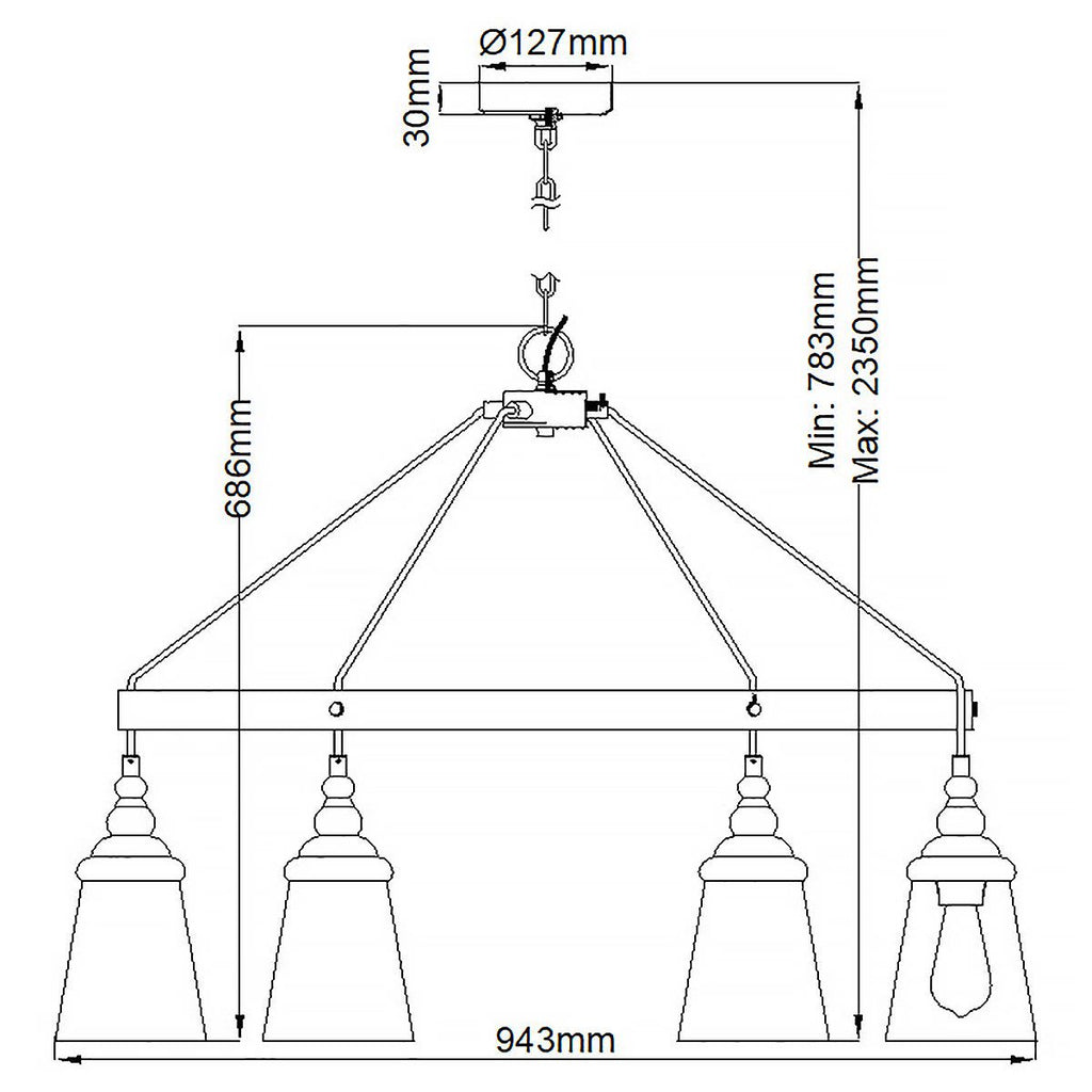 Enhance your living room or bedroom with the Loras 6 Light Chrome Chandelier—a modern interpretation of classic industrial style. Featuring clear seeded glass shades suspended from elegant black fabric cords and complemented by polished chrome metalwork, this chandelier brings a sophisticated touch to any room. Shop with confidence from the UK’s leading lighting specialists and enjoy free 90-day UK returns for a truly risk-free purchase.| Adjustable Drop | 235cm/92.5" |