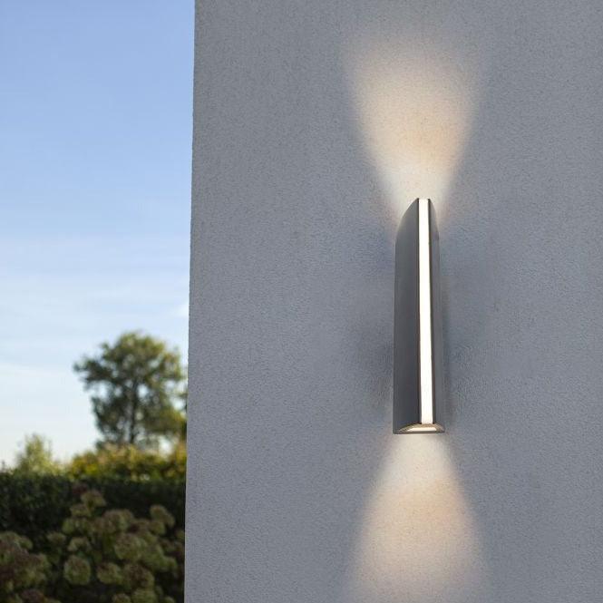 This contemporary LED wall light features a powerful up & down light beam and an opal light strip on the front. The striking design is even more impressive when multiple lights are placed together. Offering a modern and sophisticated appeal, the Lutec Leo wall light will add an exclusive touch to any outdoor living space.