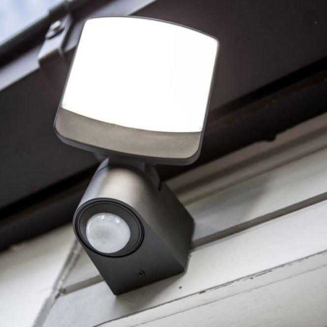 This flood light efficiently illuminates larger outdoor areas, like driveways and courtyards. It is elegantly designed and features a powerful beam. Additionally, the rectangular head is adjustable on two axes, complete with a precise and reliable sensor.