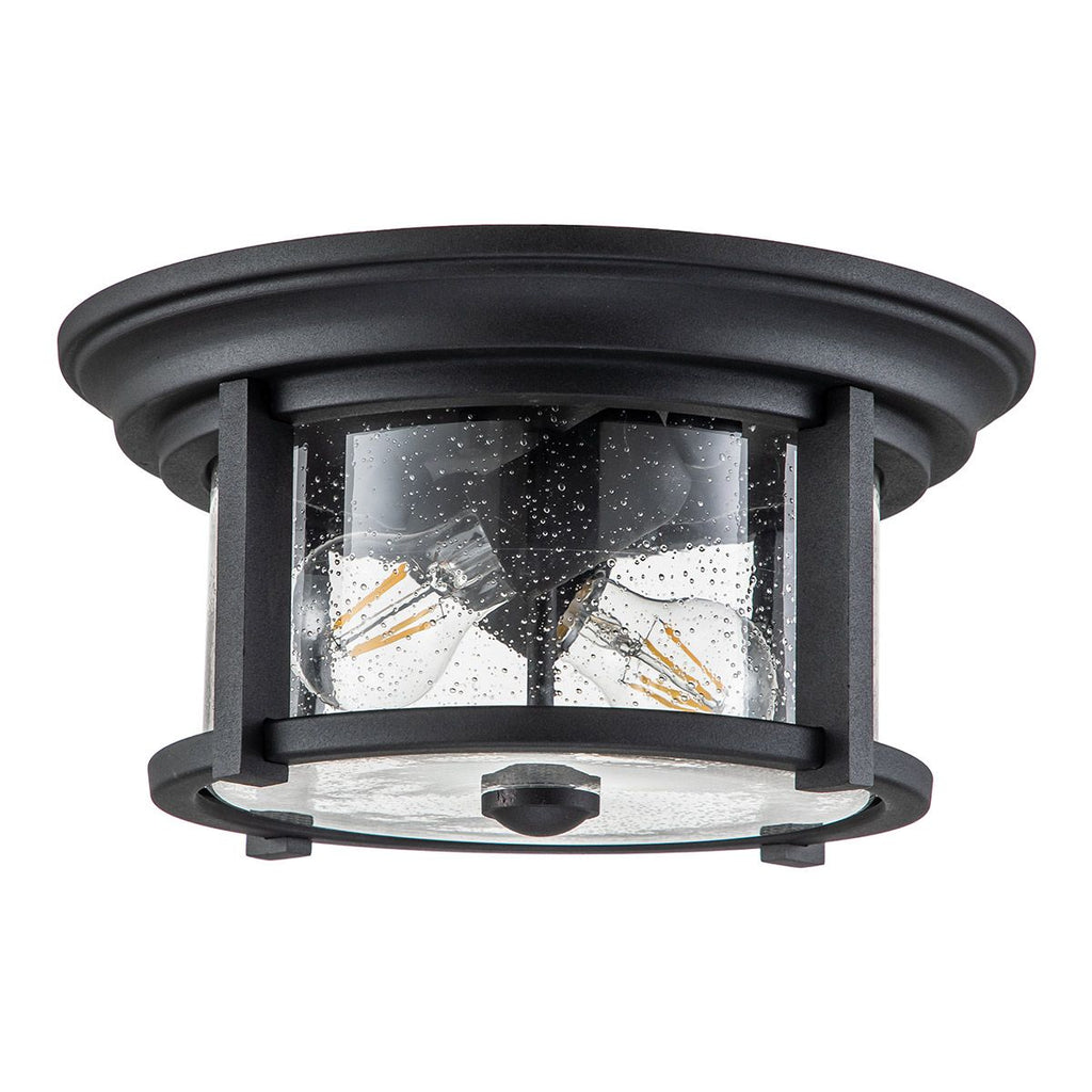 Enhance your outdoor spaces with the Merrill 2 Light Outdoor Flush Light. Featuring a sophisticated black finish and clear seeded glass, this fixture delivers both style and functionality. Its IP44 rating ensures reliable performance in all weather conditions, making it an ideal choice for illuminating patios, porches, and entryways. Create a welcoming atmosphere and elevate your exterior décor with this distinctive lighting solution. Shop with confidence from the UK’s leading lighting specialists and enjoy free 90-day UK returns.| Height | 16.2cm/6.4" |