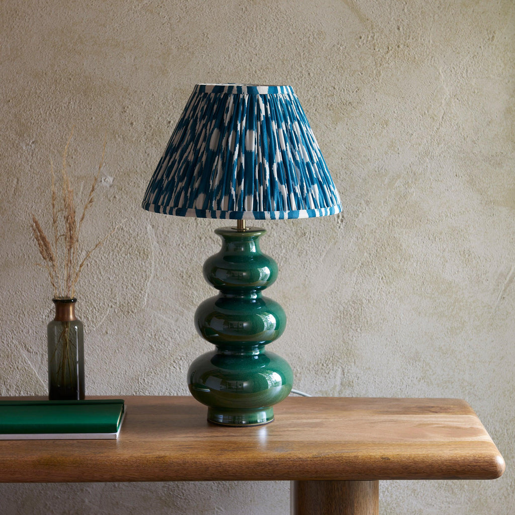 Monroe Green Ceramic Table Lamp & Ikat 30cm Marlin Blue Shade