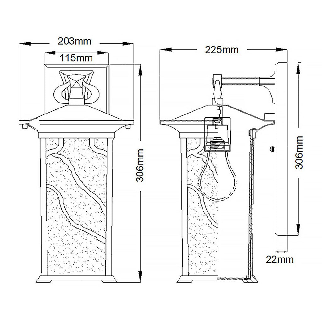 Elevate your outdoor space with the Morris 1 Light Large Copper Wall Lantern. Inspired by timeless Southwest Mission design, this lantern features a distinctive trailing silhouette, a beautifully distressed copper finish, and inside-etched, iridescent seedy glass that creates a warm, inviting glow. Bui Light to withstand the elements with its IP44 rating, it combines durability with striking style. Shop with confidence from the UK’s leading lighting specialists and enjoy free 90-day UK returns.| Projection | 22.5cm/8.9" |