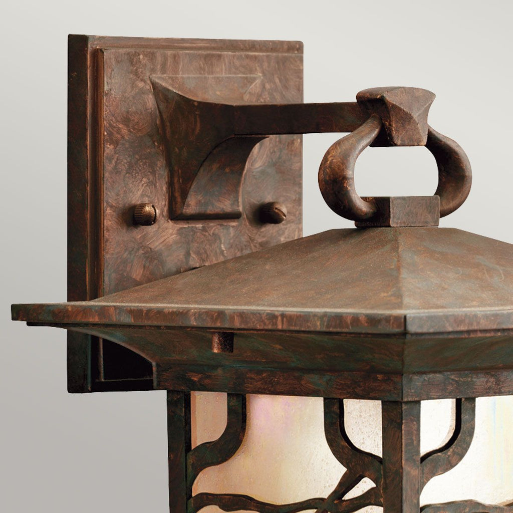 Enhance your outdoor space with the Morris 1 Light Medium Copper Wall Lantern, a stunning piece inspired by Southwest Mission design. Its distinctive trailing pattern, paired with a distressed copper finish and inside-etched, iridescent seedy glass, creates a warm and inviting ambiance that will impress for years to come. Rated IP44 for reliable outdoor performance, this lantern combines style and durability. Shop with confidence from the UK’s leading lighting specialists and enjoy free 90-day UK returns.| Projection | 22.2cm/8.7" |