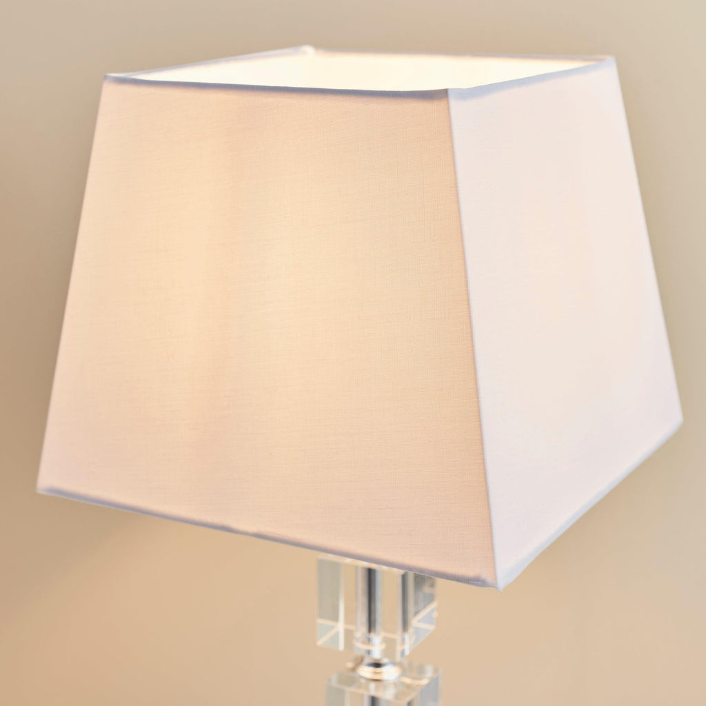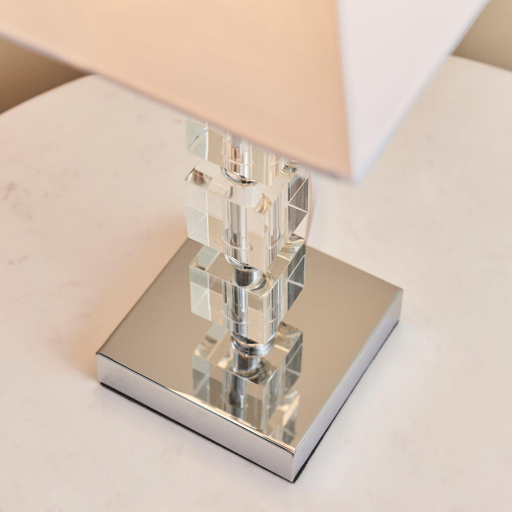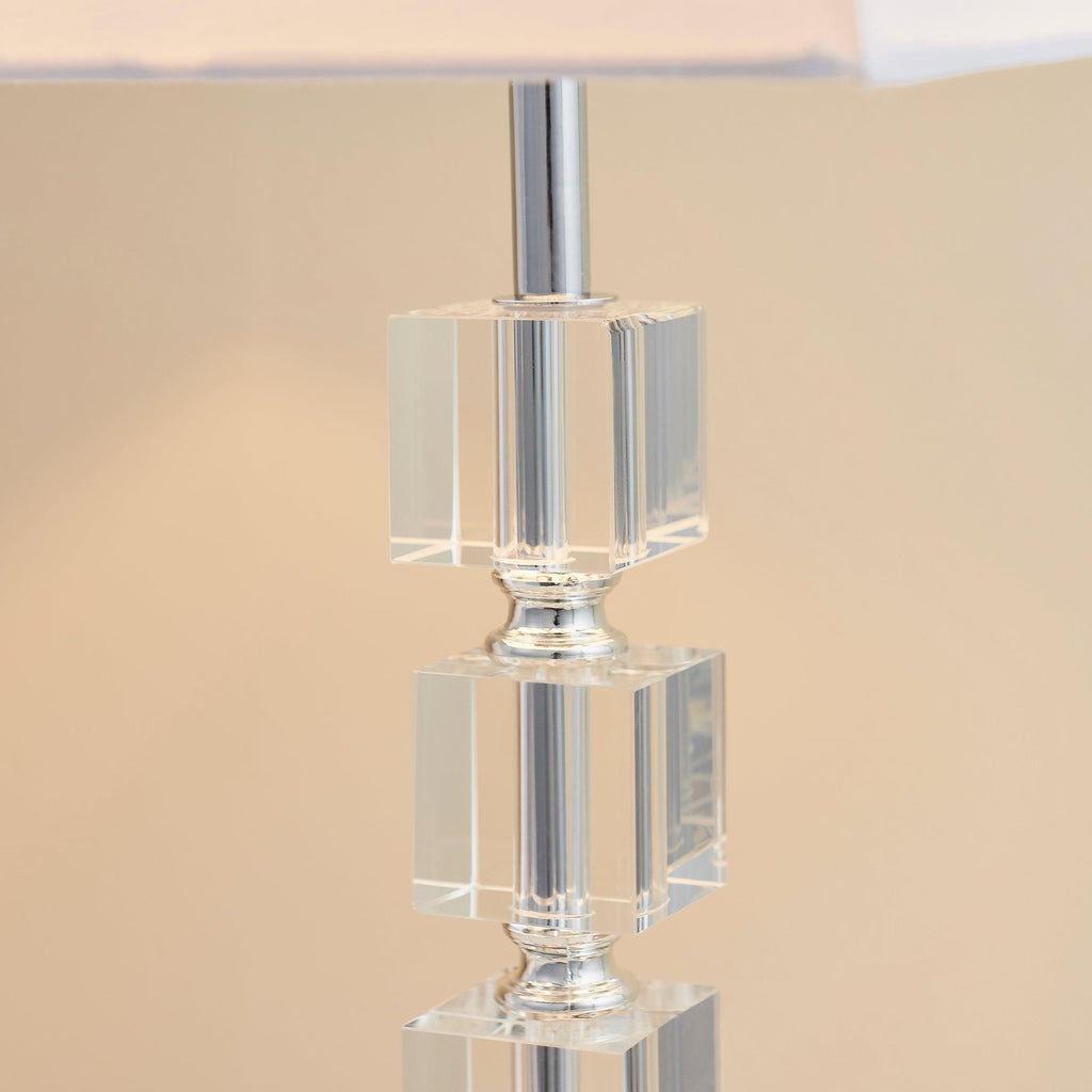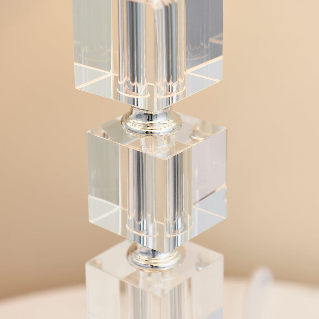 A great looking lamp! The Murford Clear Acrylic And White Cotton Mix Table Lamp by Endon Lighting has 4 clear acrylic cubes on its base - smart, modern and very attractive.