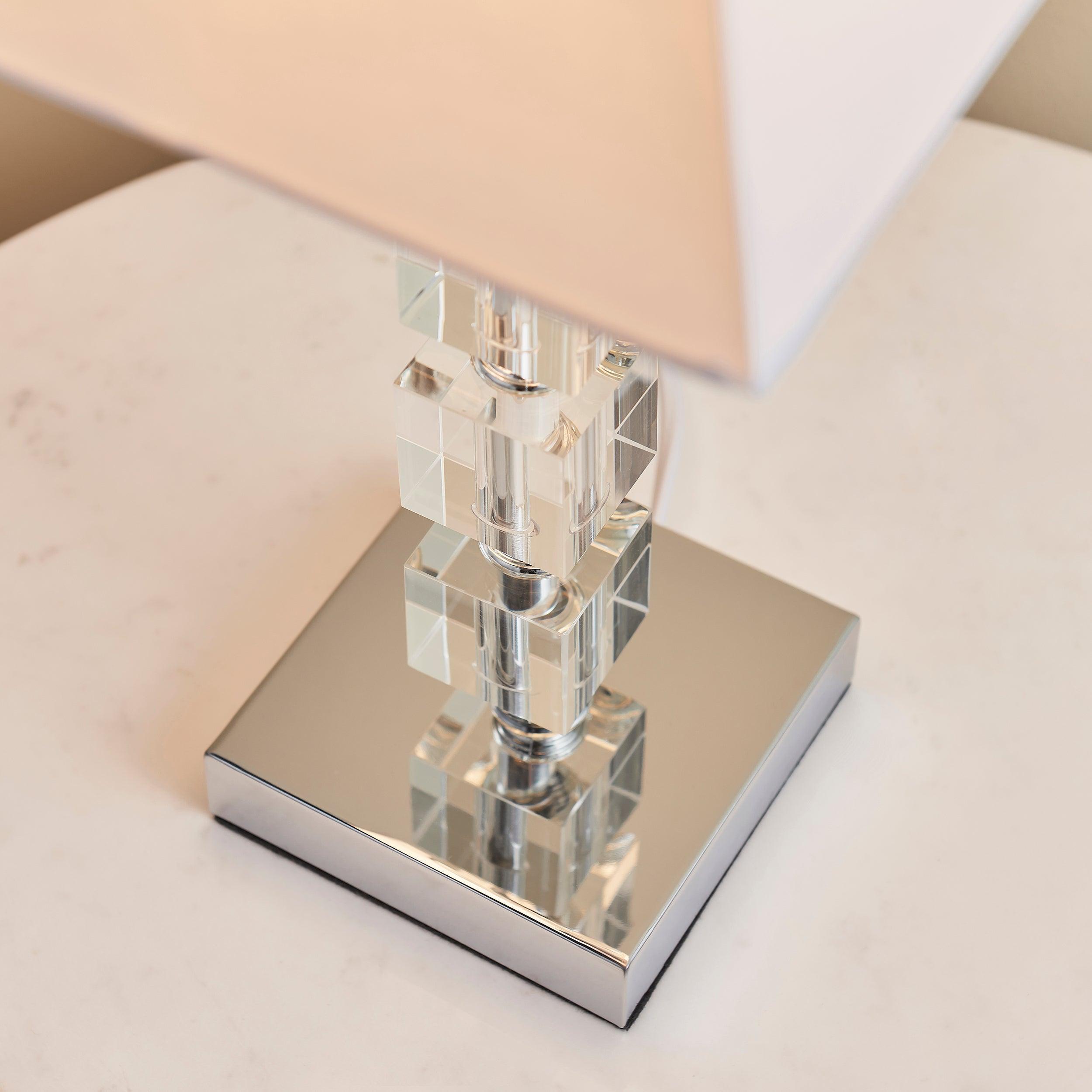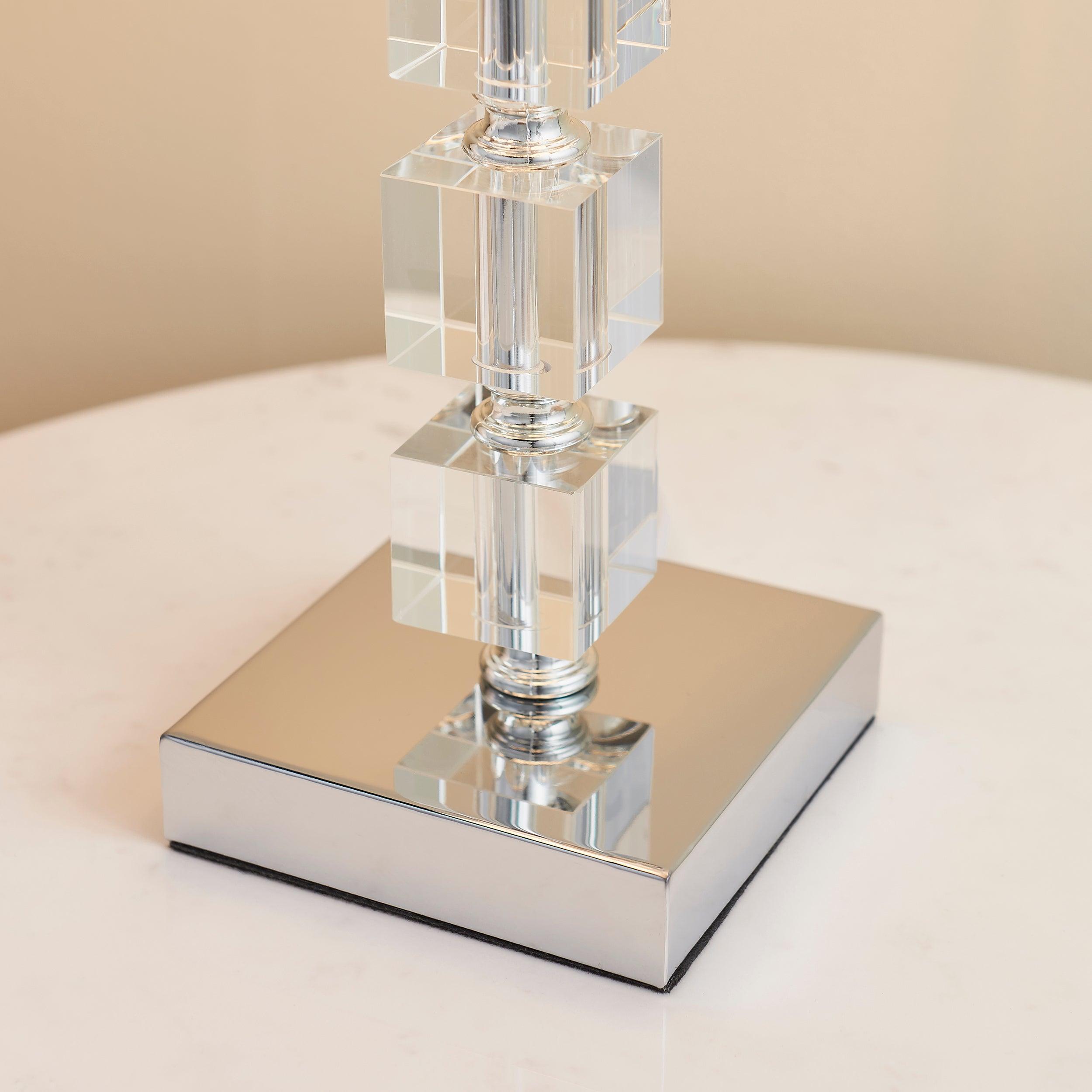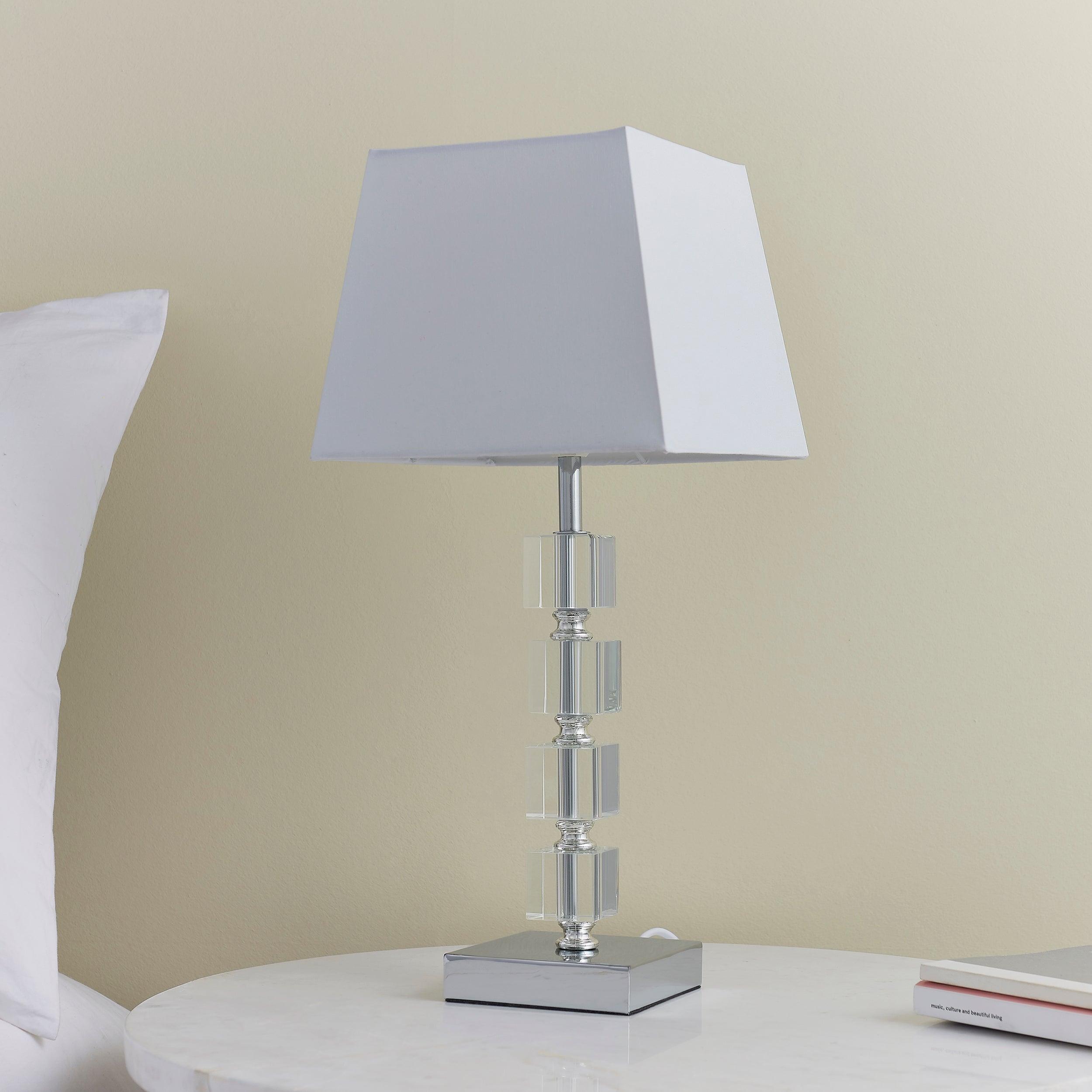 A great looking lamp! The Murford Clear Acrylic And White Cotton Mix Table Lamp by Endon Lighting has 4 clear acrylic cubes on its base - smart, modern and very attractive.