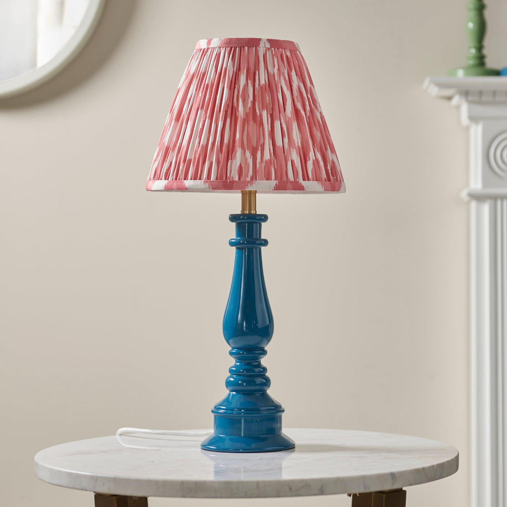 Myrtle Blue Table Lamp & Ikat 25cm Coral Pink Shade