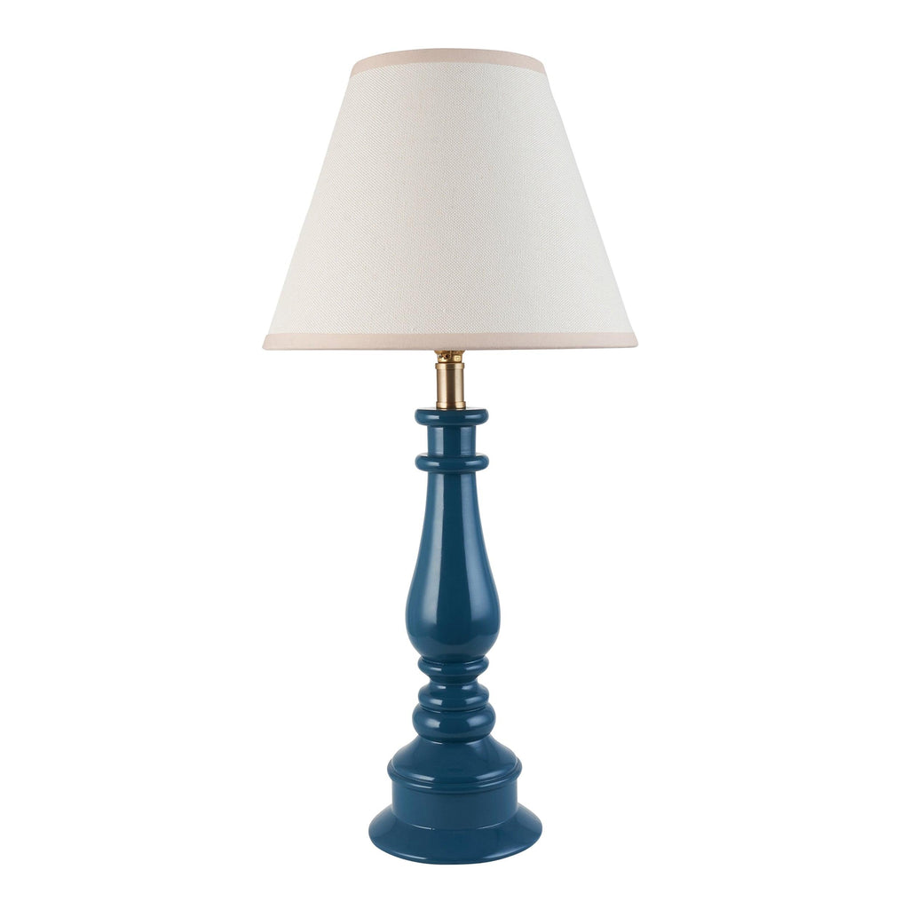 Inspired by the elegance of classic staircase spindles, this stunning table lamp is crafted from high-gloss marlin blue resin, exuding a sophisticated charm. Featuring a switched B22 brass lamp holder and a delicate pale braided fabric flex, it seamlessly combines style and functionality. Paired with our vintage and almond white 25cm Ivy shade, this lamp creates a timeless country luxe aesthetic that is perfect for enhancing your living room. Whether you're curling up with a good book or entertaining guests, this exquisite piece provides the ideal ambiance for any occasion. Enjoy peace of mind with our secure delivery service and hassle-free returns, ensuring a safe online shopping experience. Elevate your home decor with this captivating table lamp today!| Height | 52cm/20.5" |