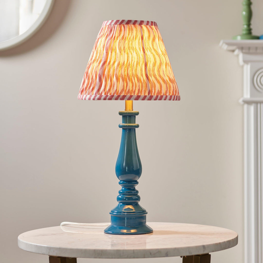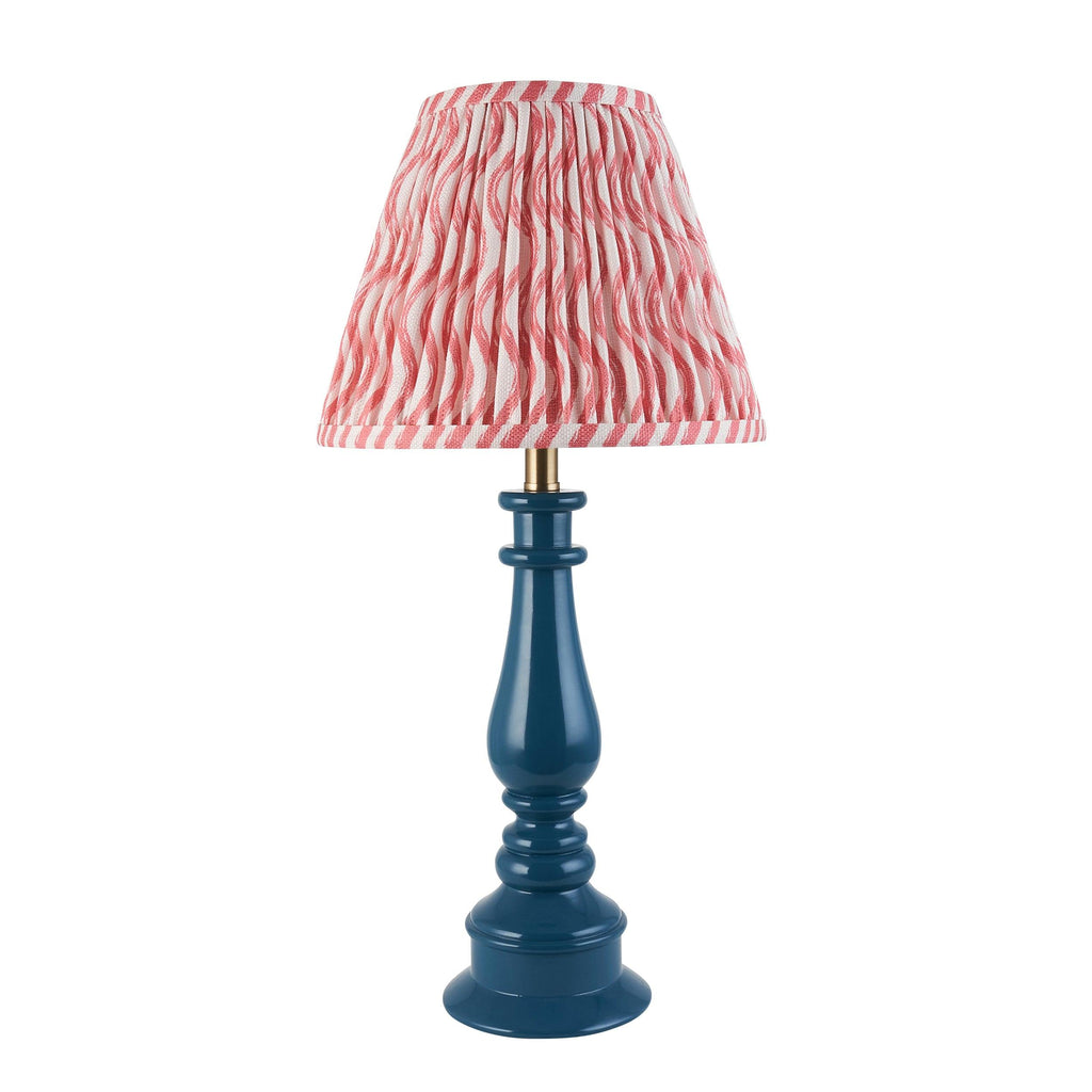 Myrtle Blue Table Lamp & Ripple 25cm Coral Pink Shade
