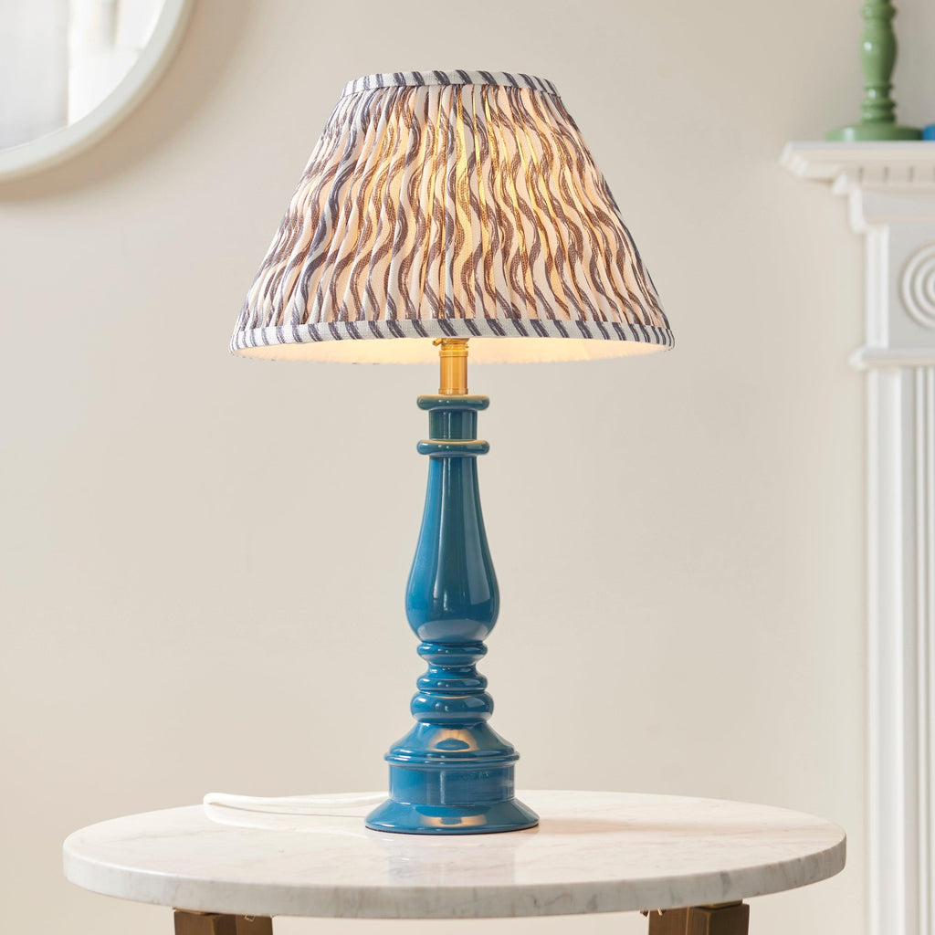 Myrtle Blue Table Lamp & Ripple 30cm Pearl Grey Shade