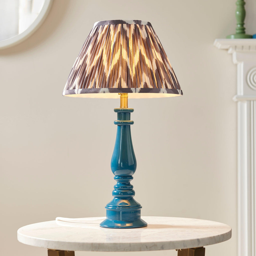 Myrtle Blue Table Lamp & Zigzag 30cm Pearl Grey Shade