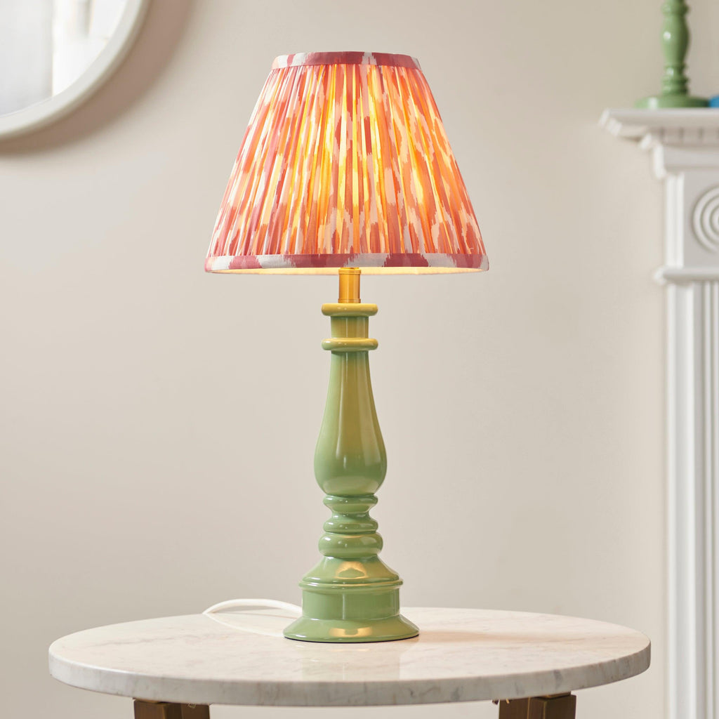 Myrtle Green Table Lamp & Ikat 25cm Coral Pink Shade