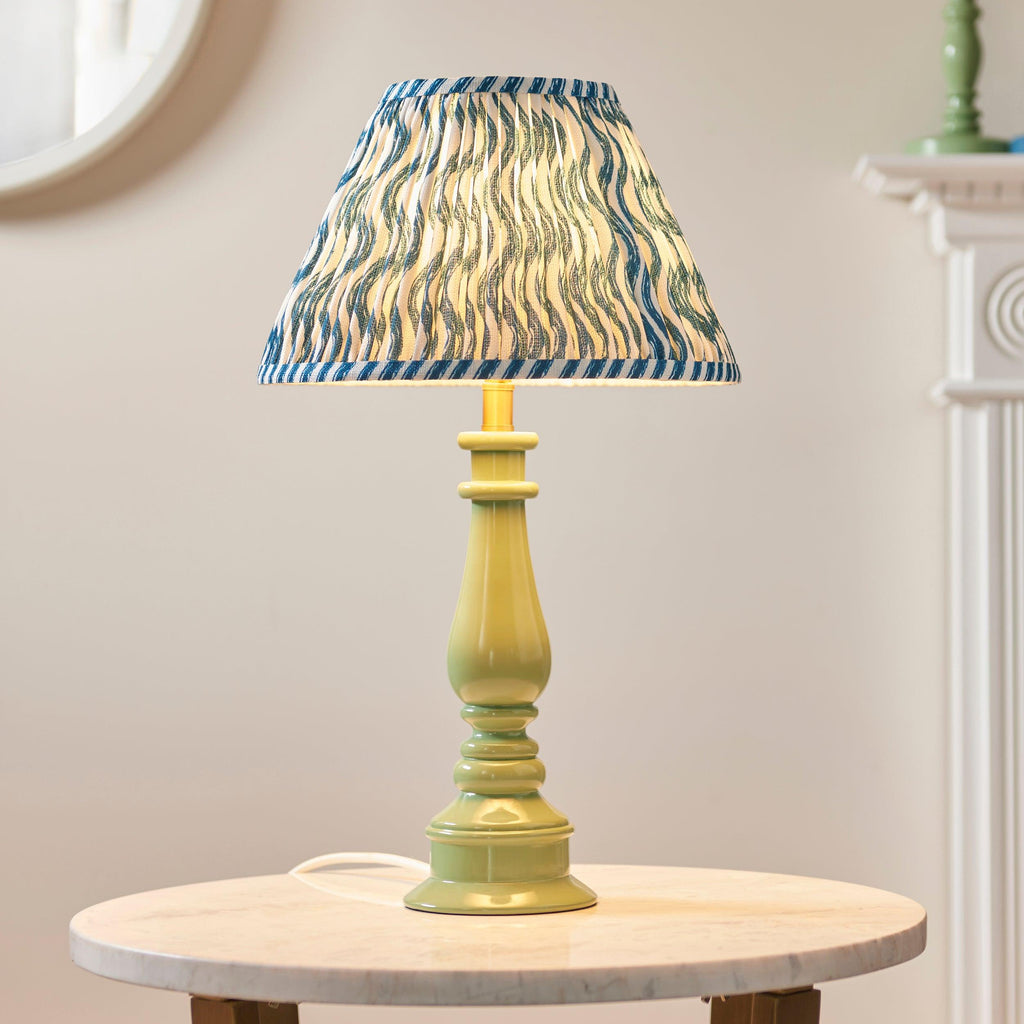 Myrtle Green Table Lamp & Ripple 30cm Marlin Blue Shade