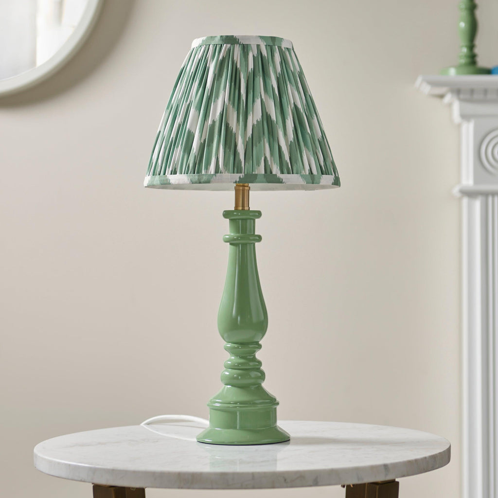 Myrtle Green Table Lamp & Zigzag 25cm Cotswold Green Shade