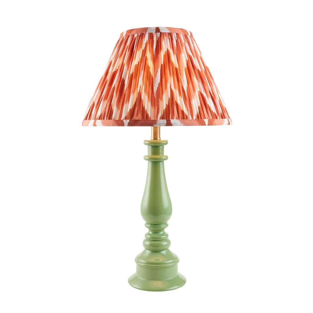 Myrtle Green Table Lamp & Zigzag 30cm Apricot Orange Shade