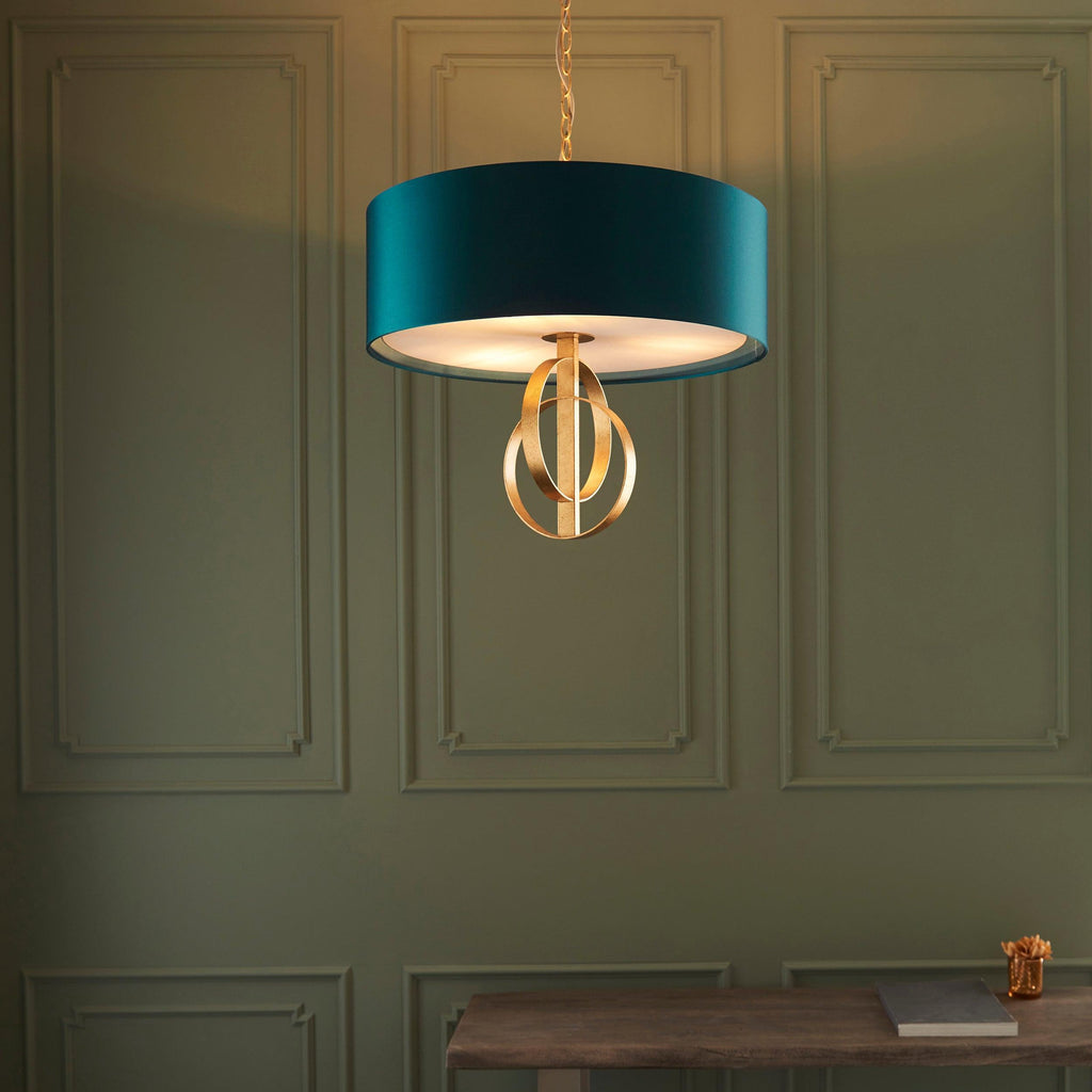 Norfolk 3 Light Gold Leaf Ceiling Pendant - Large Teal Shade