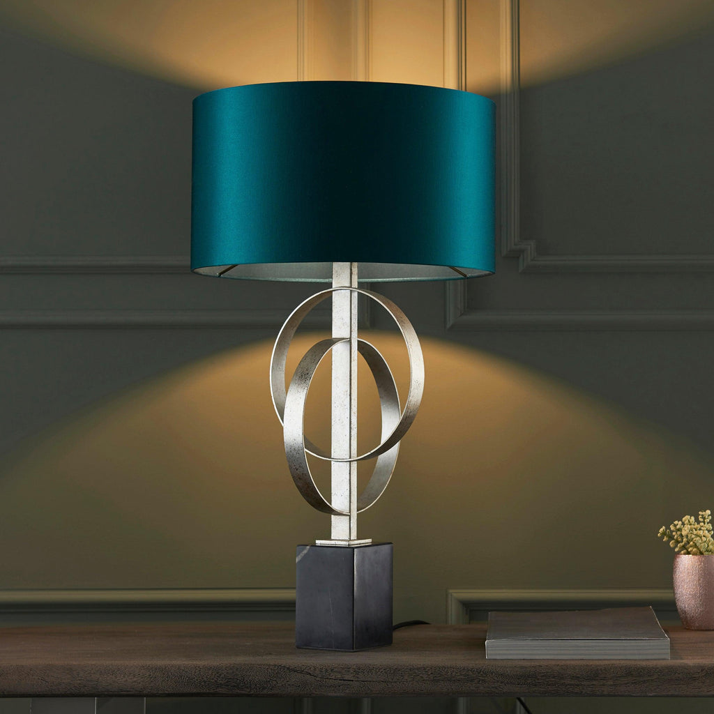 Norfolk Silver Table Lamp With Black Marble Base - Teal Shade