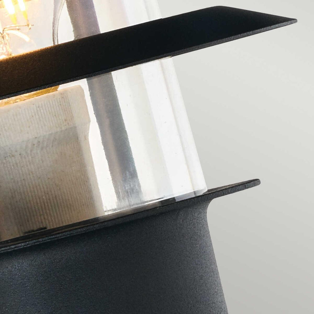 The Norlys Larvik 1 Light Black Outdoor Wall Light features a sleek, modern design with a matte black finish, making it an ideal choice for enhancing the exterior of any home. Its robust construction ensures durability and resistance to the elements, while the clear glass encasement allows for optimal light diffusion. The layered shade design not only adds a touch of contemporary elegance but also provides a warm and inviting glow, perfect for illuminating pathways, patios, or entryways. This versatile fixture seamlessly blends style and functionality, making it a perfect addition to any outdoor lighting scheme.