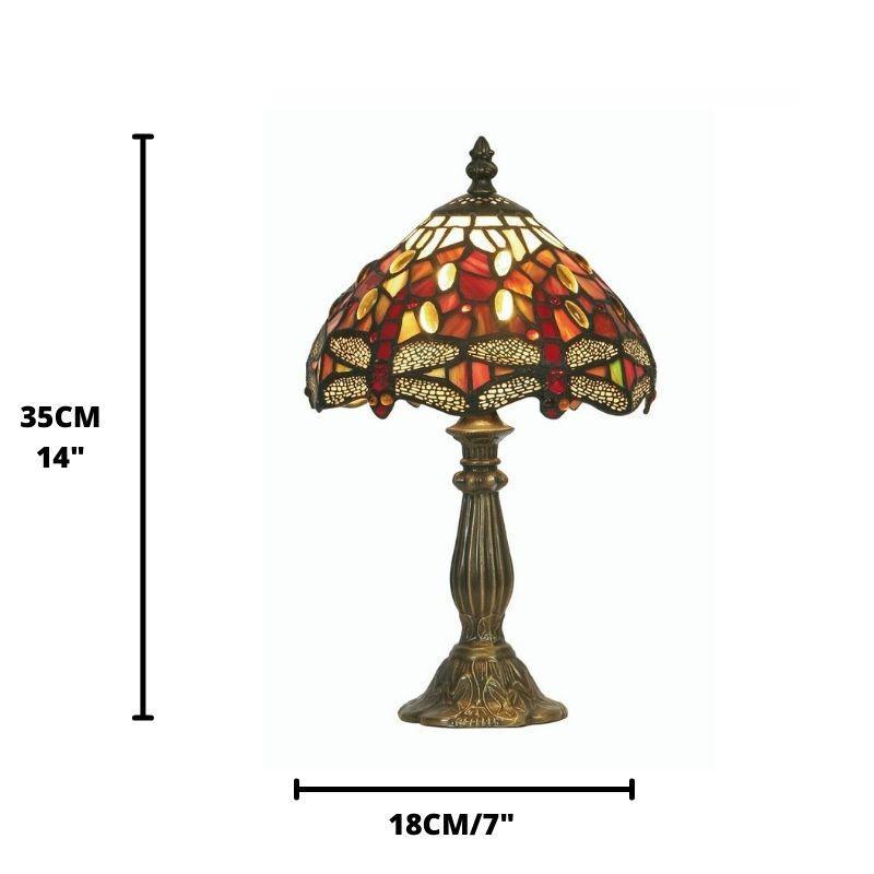 The Dragonfly Tiffany Light is a stunning celebration of classic design, combining a gentle blend of green and red opalescent art glass with rich beige tones for a timeless and eye-catching effect. This lamp is part of the Oaks Tiffany Dragonfly range, offering a variety of options to coordinate your home lighting—including ceiling lights, wall lights, and alternate table lamp styles.