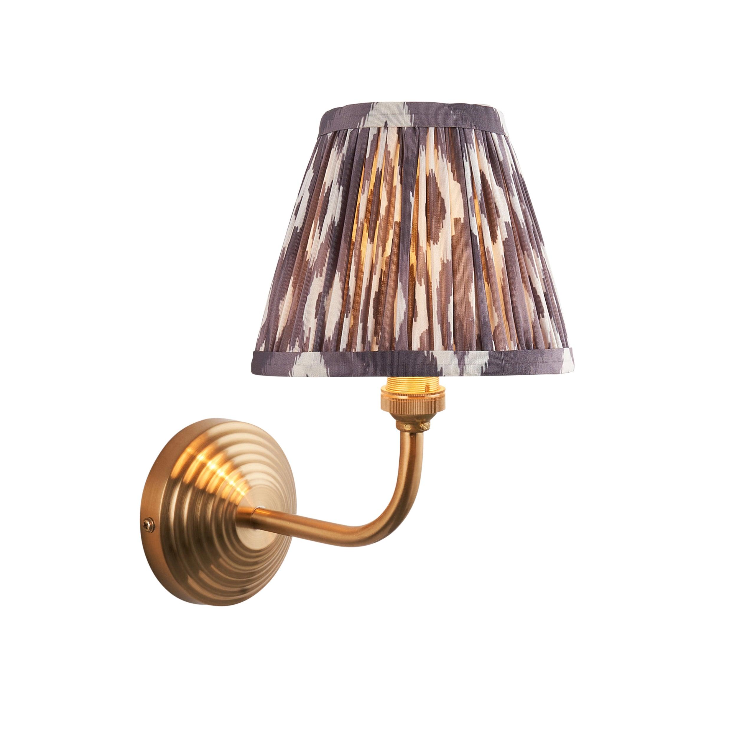 Obelisk Arc Brass Wall Light & Ikat 16cm Pearl Grey Shade