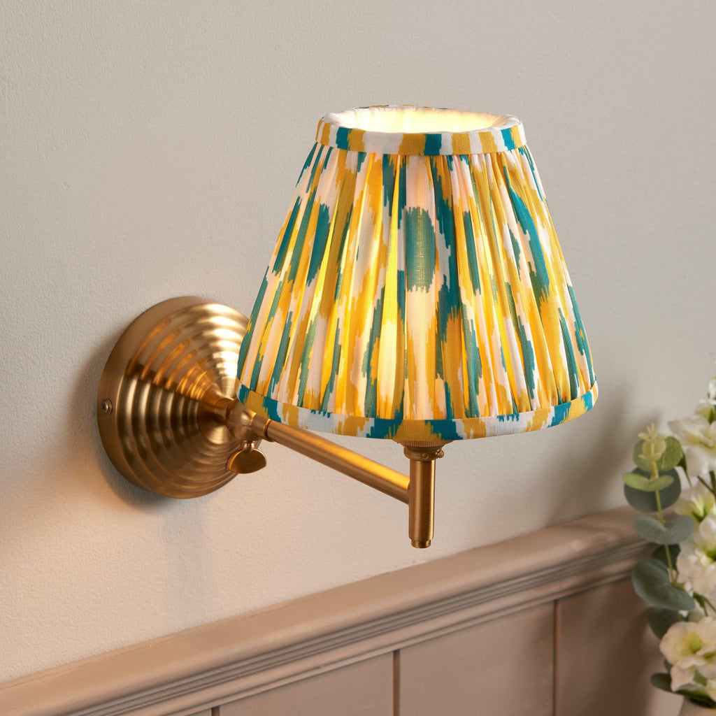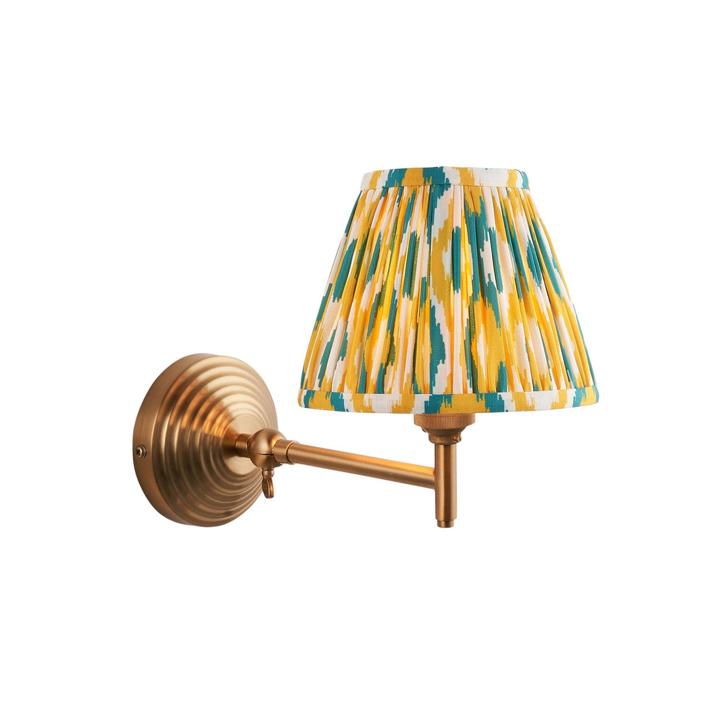 Obelisk Fold Brass Wall Light & Ikat 16cm Yellow & Jade Shade