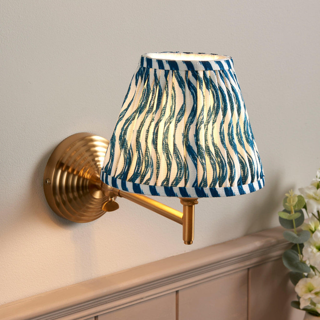 Obelisk Fold Brass Wall Light & Ripple 16cm Marlin Blue Shade