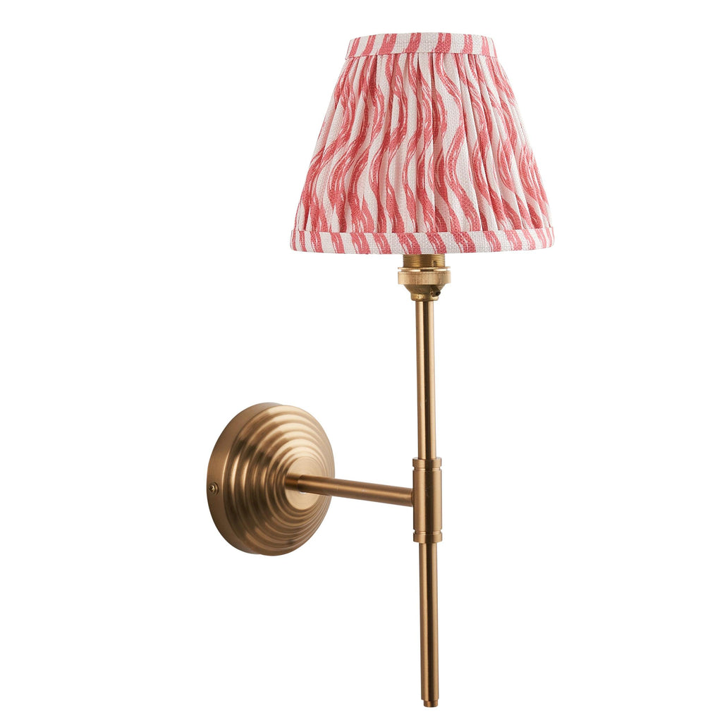 Obelisk T Bar Brass Wall Light & Ripple 16cm Coral Pink Shade