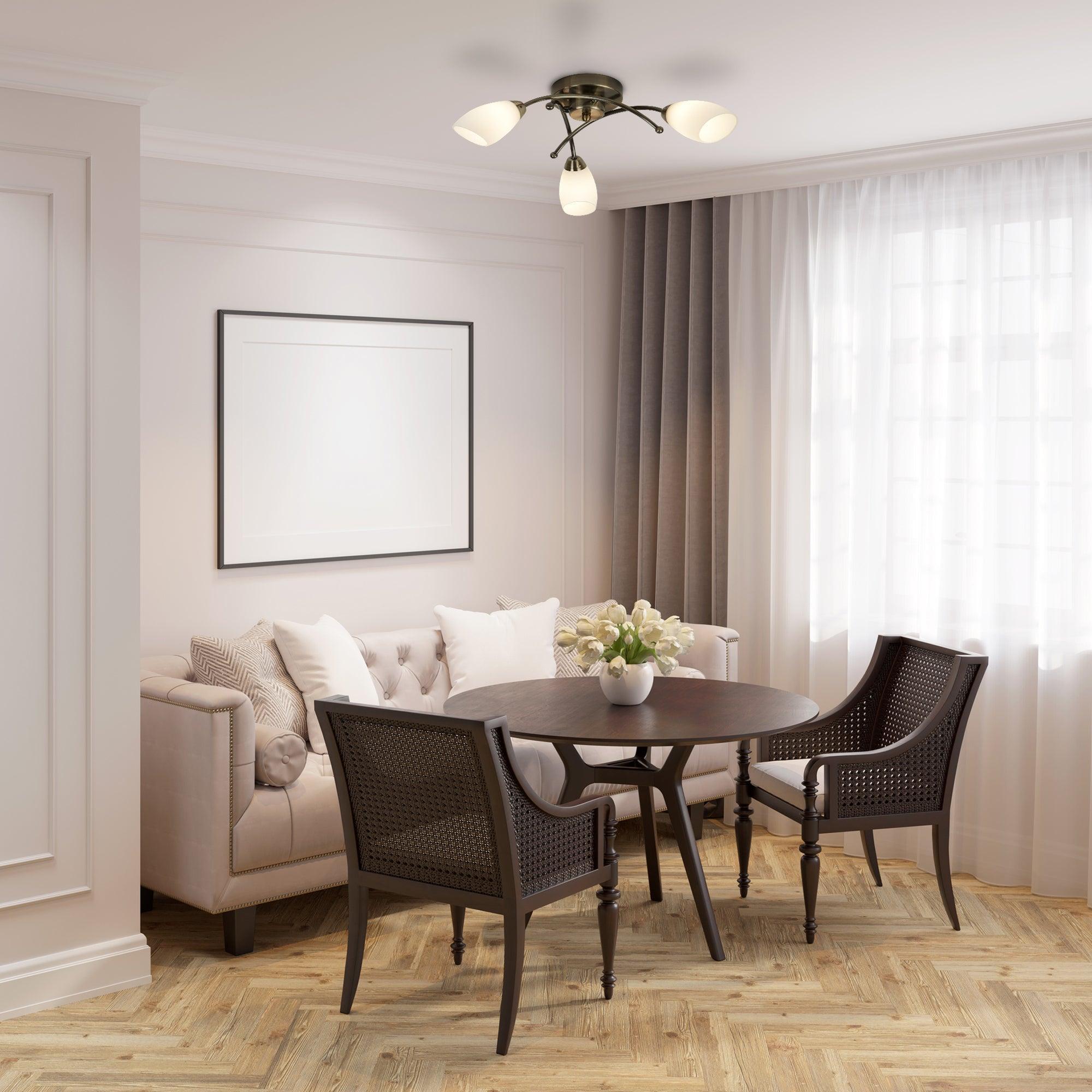 Illuminate your living space with the sophisticated charm of our flush ceiling light, a perfect blend of elegance and functionality. This exquisite fixture, showcased in a stunning antique brass finish, effortlessly complements both modern and traditional interiors, making it an ideal choice for your living room or bedroom. Its sleek, low-profile design ensures it fits seamlessly into any space, providing ample illumination without overwhelming your decor. The light's frosted glass shade diffuses a warm, inviting glow, creating a cozy and welcoming atmosphere that transforms your home into a haven of comfort and style. Whether you're curling up with a good book or entertaining guests, this flush ceiling light is the perfect addition to elevate your home's ambiance.