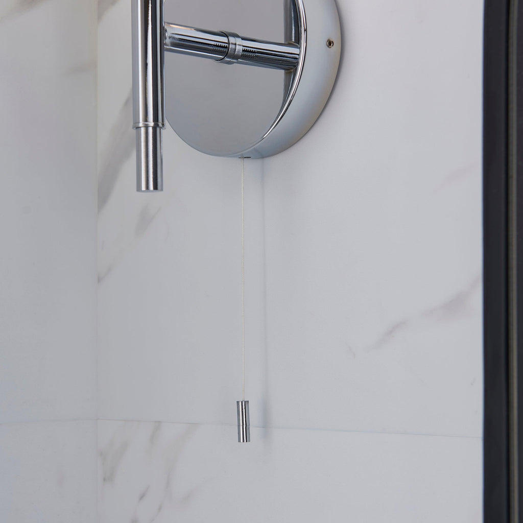 Oundle Single Chrome Bathroom Wall Light - Pull Cord