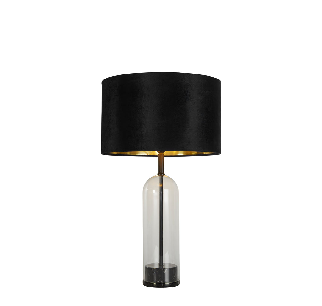 Oxford Table Lamp- Glass, Black Metal, Marble & Black Velvet