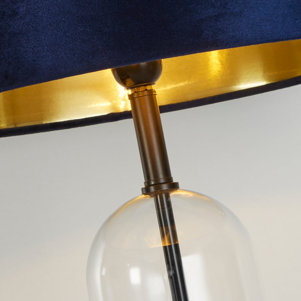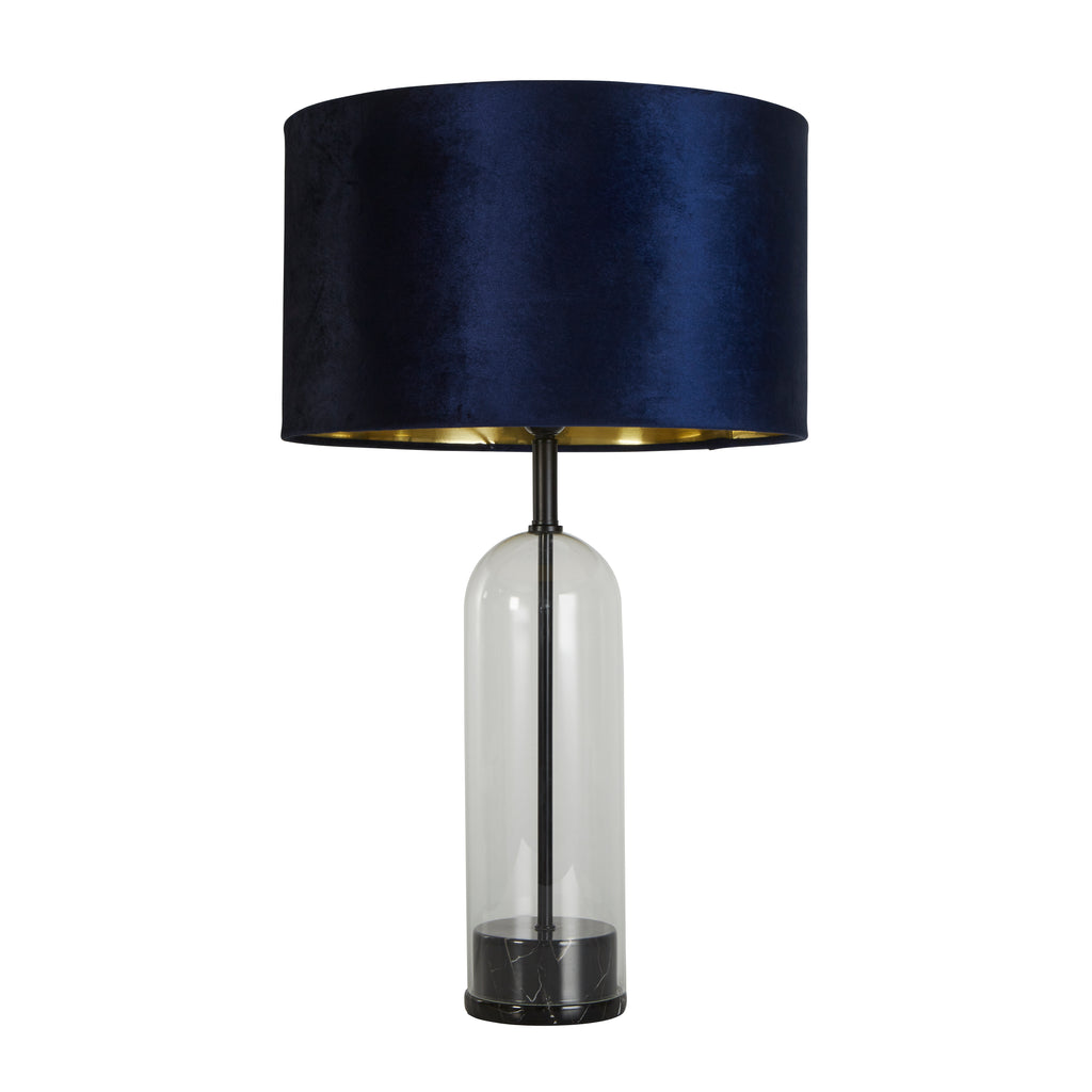 Oxford Table Lamp- Glass, Black Metal, Marble & Navy Velvet