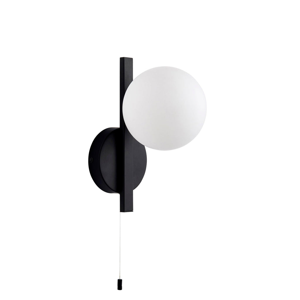 Pendle Black & Opal Glass Bathroom Wall Light - Pull Cord